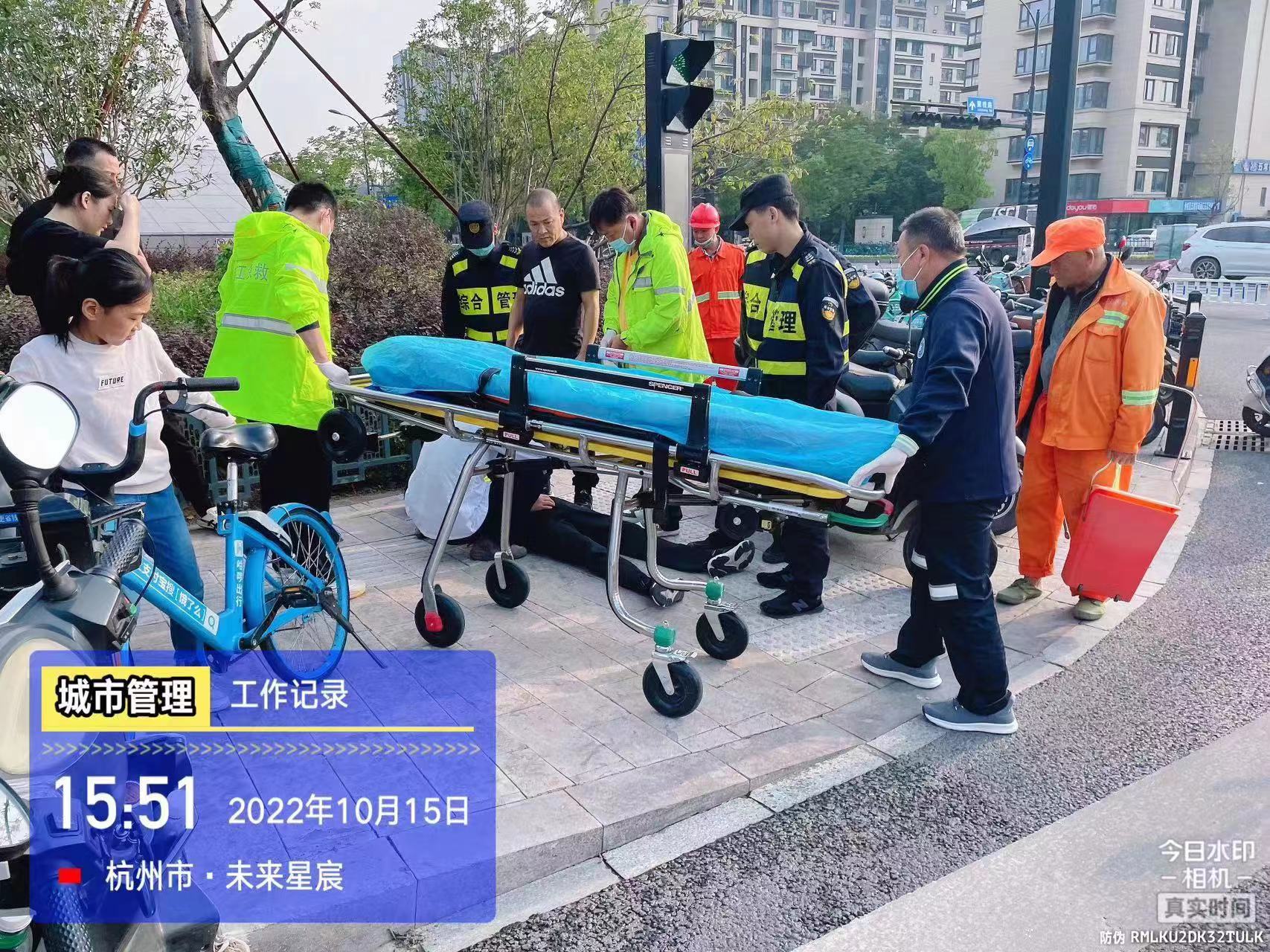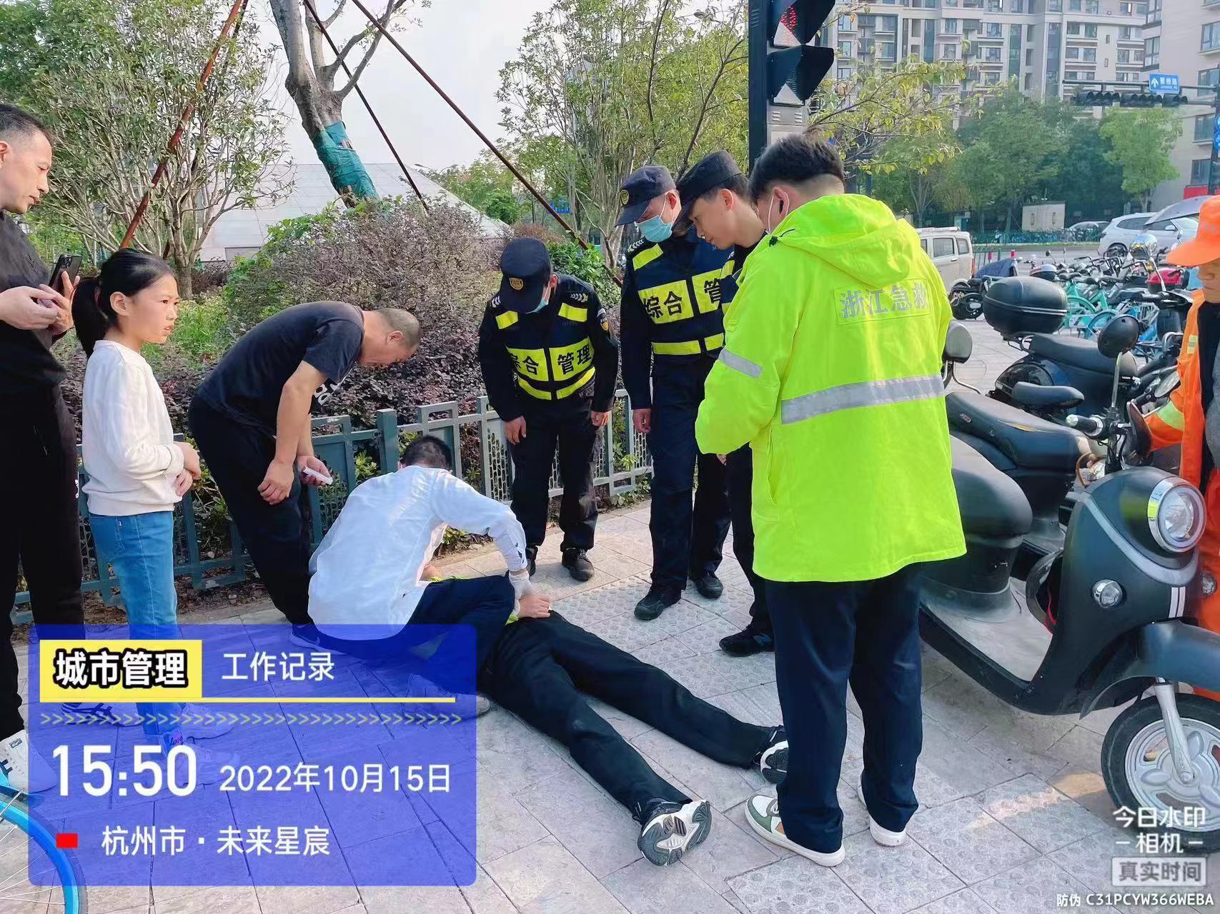 10月15日,浙江民泰公司駐杭州市余杭區(qū)五常市容項(xiàng)目員工熱心救助倒地男子。