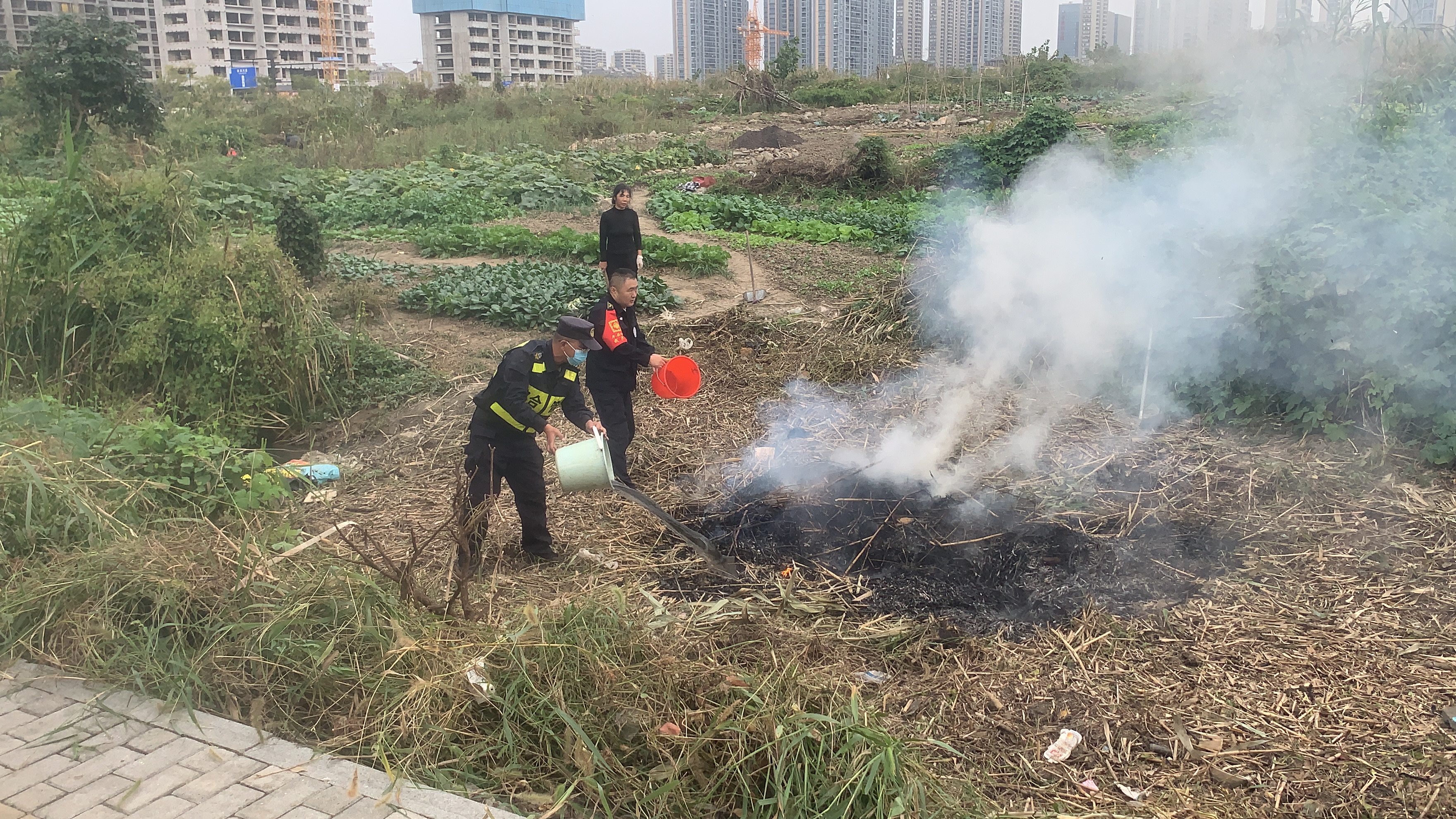 11月1日,浙江民泰公司駐杭州市余杭區(qū)良渚地鐵項(xiàng)目員工勸止焚燒秸稈居民,并主動(dòng)幫助滅火。