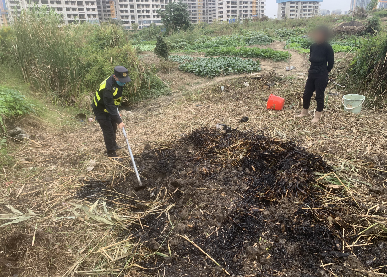 趕到荒地后,包志丹看到一位身穿黑衣的中年女子正在焚燒,就立即上前勸說(shuō)不要焚燒秸稈。焚燒秸稈產(chǎn)生的有害物質(zhì),不僅會(huì)污染環(huán)境,同時(shí)還存在火災(zāi)隱患。經(jīng)過(guò)耐心勸導(dǎo),黑衣女子當(dāng)場(chǎng)表示不焚燒秸稈了。