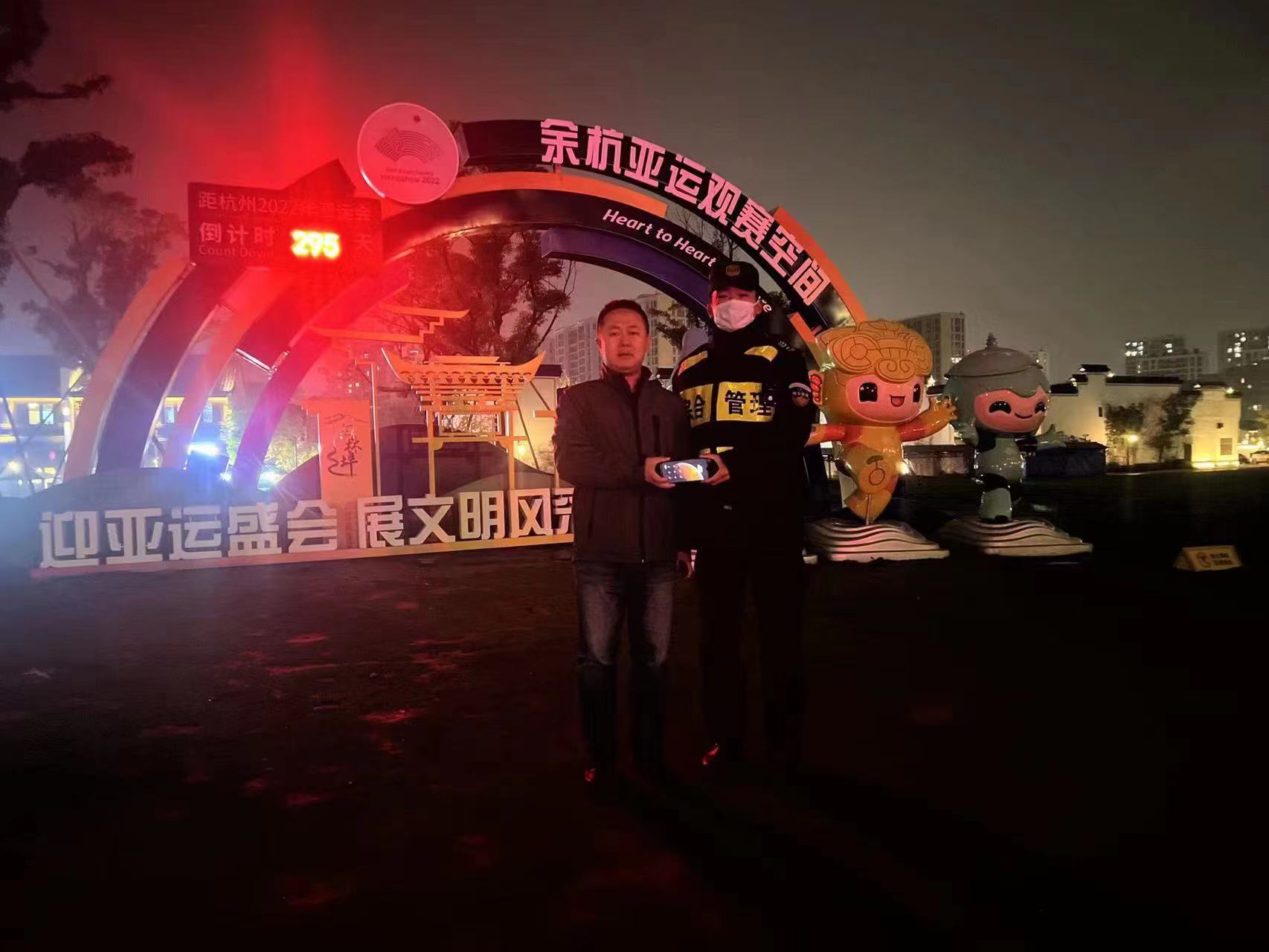 當(dāng)日19:21,公司員工朱富豪在閑林老街大草坪奧運(yùn)牌附近巡邏時(shí),撿到一部小米手機(jī),將情況報(bào)告項(xiàng)目組長(zhǎng)后,按指示在原地等待。