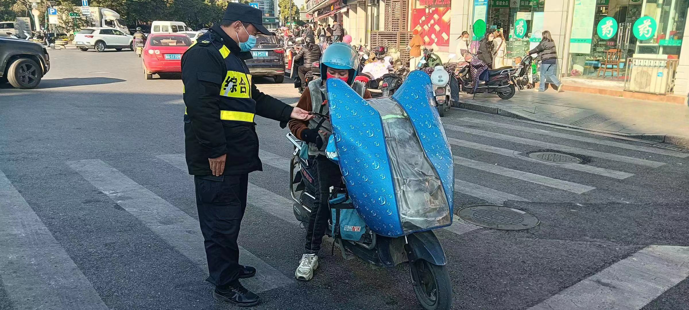 過了一會兒,一位騎著電瓶車的外賣小哥來到現(xiàn)場,來回走動,好像是在尋找什么東西。王向華見此情景,就主動上前詢問,經(jīng)核實確認(rèn)外賣小哥是失主后,就把手機(jī)交還給了他。