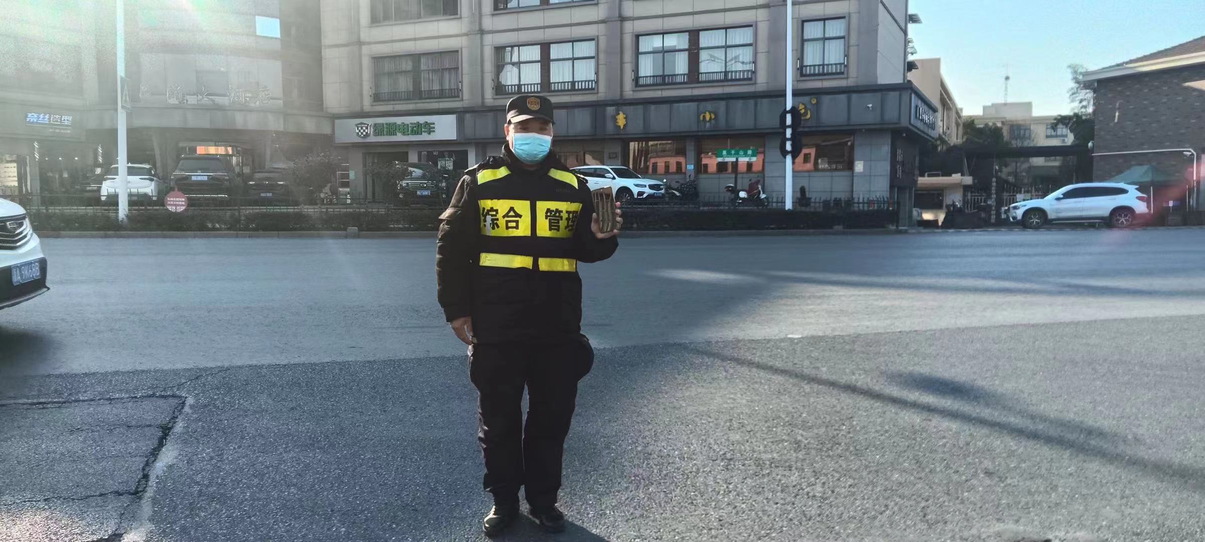 當(dāng)日14:30,公司員工王向華在良渚街道莫干山路玉棕路交叉口值勤時,撿到一部vivo手機(jī)。因手機(jī)設(shè)置有鎖屏密碼,無法第一時間聯(lián)系到失主,王向華便將現(xiàn)場情況上報了項目負(fù)責(zé)人,并按指示在原地等待。