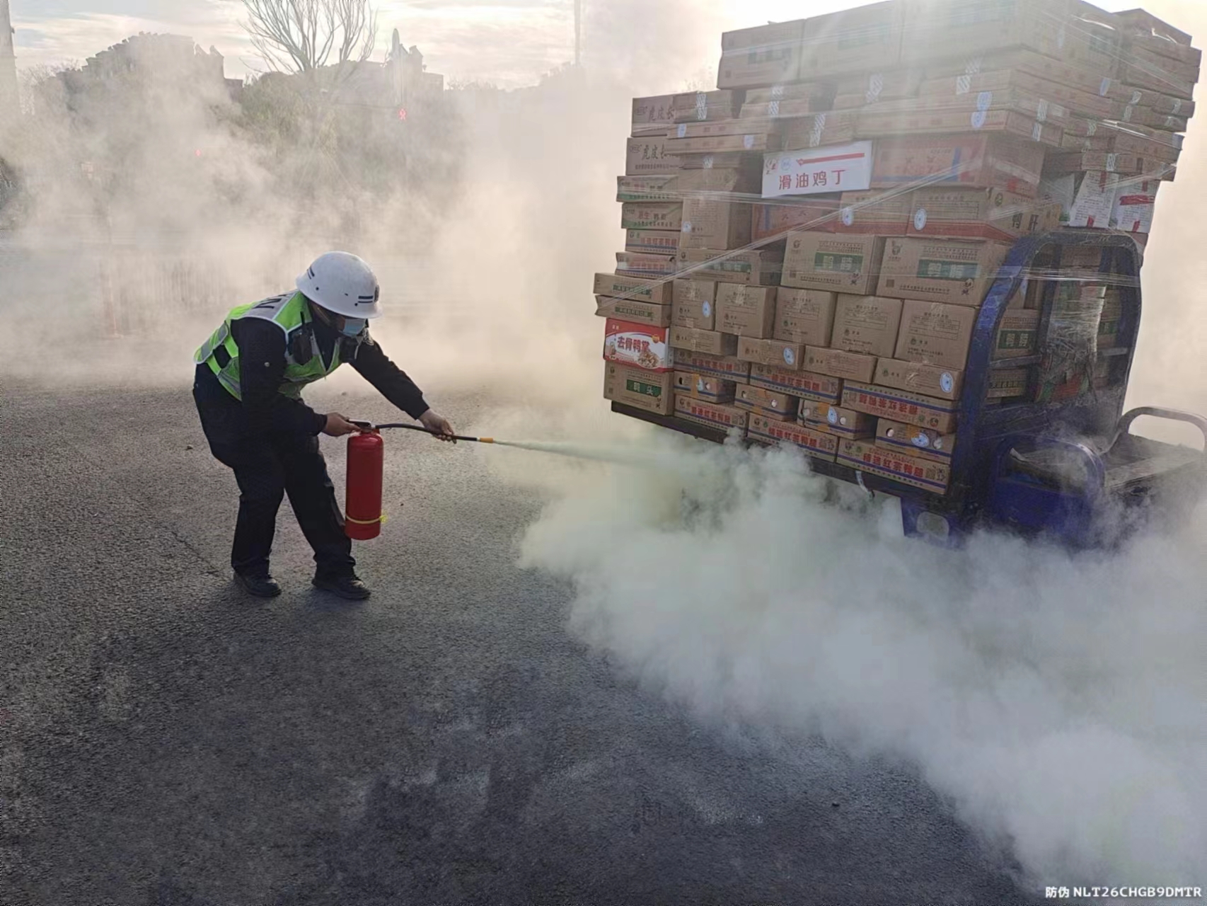 三輪車街頭起火 好員工滅火施救—浙江民泰公司員工幫助撲滅起火三輪車