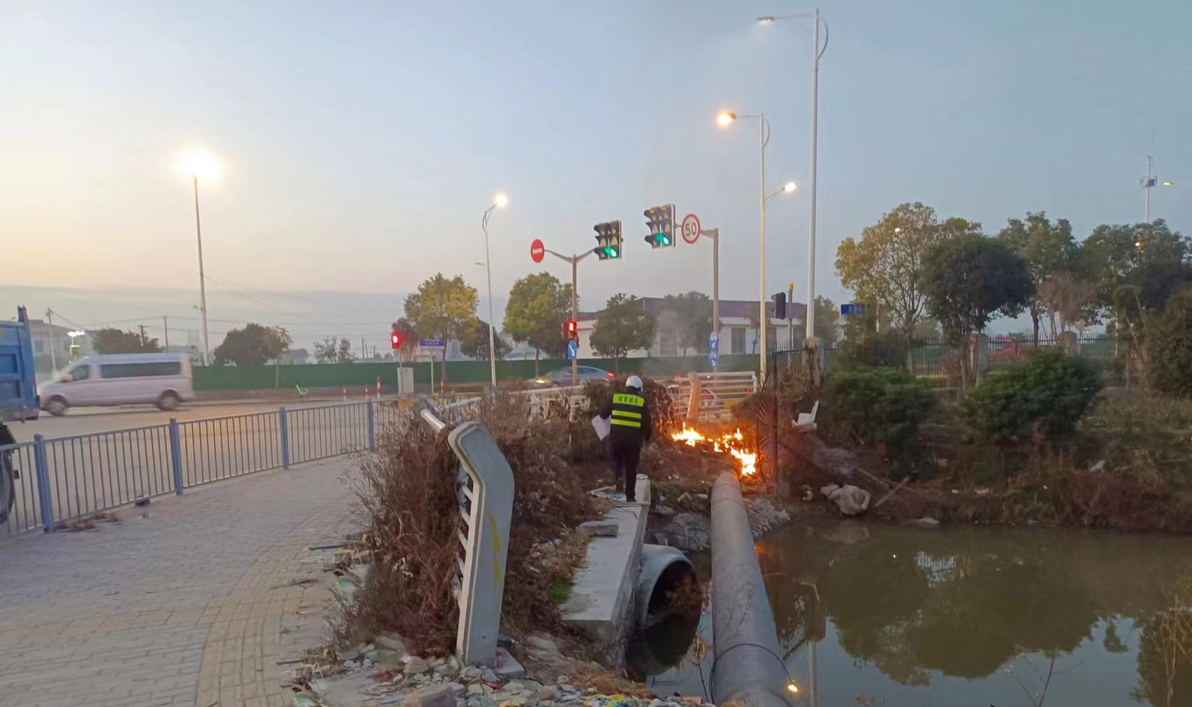 1月9日,宗保公司駐康橋市容項目員工發(fā)現(xiàn)橋邊有處野火,第一時間進行滅火,控制了火勢蔓延。