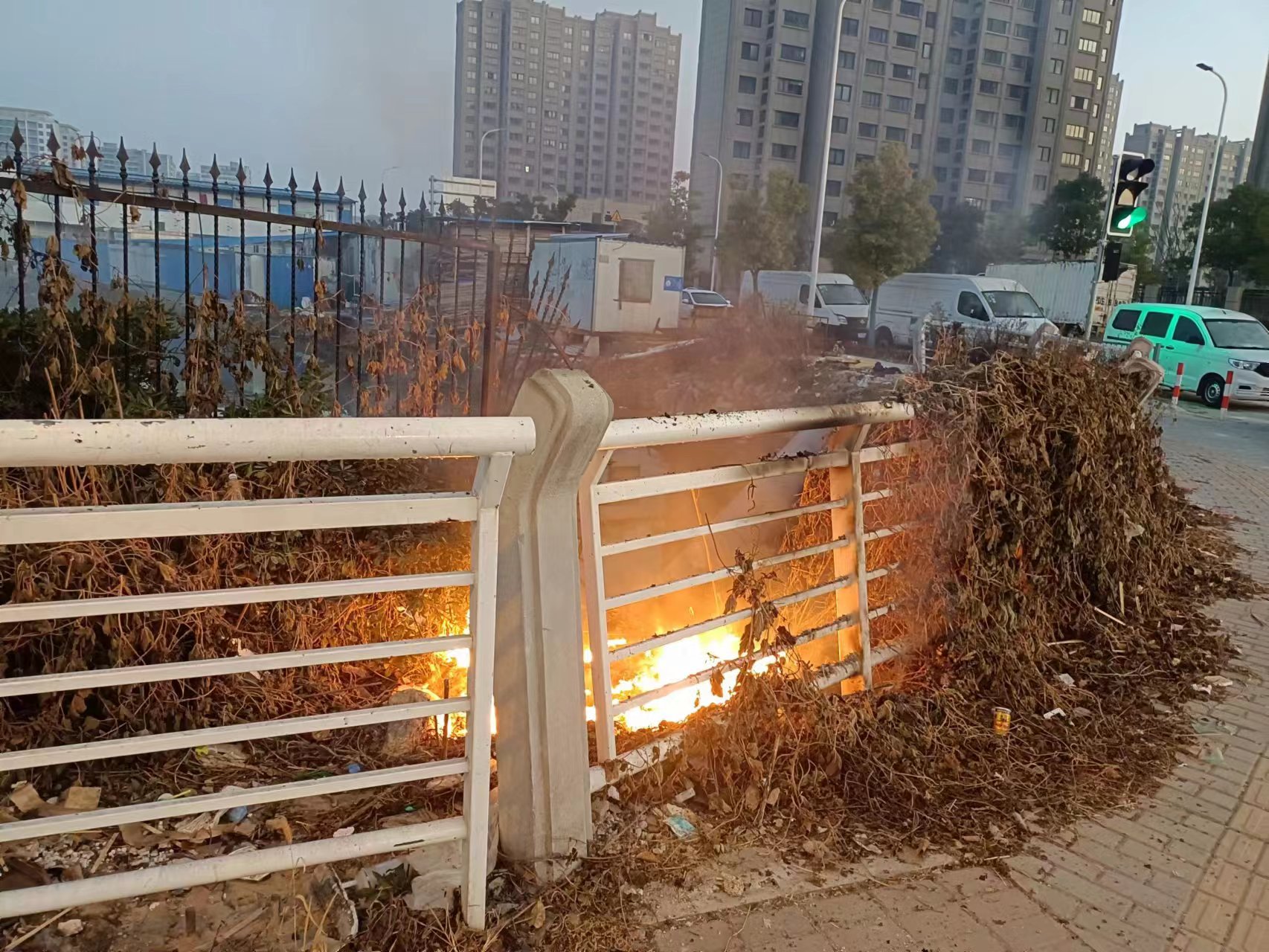 當(dāng)天6:30,公司員工李山和鄭彥兵在年家浜路浦三路橋巡邏時,感覺有陣陣濃煙飄來,隨即便循煙察看,發(fā)現(xiàn)有處明火,正在向橋旁邊的護欄蔓延,而周圍全是厚厚的枯萎野草,如不及時處理,可能會帶來安全隱患。