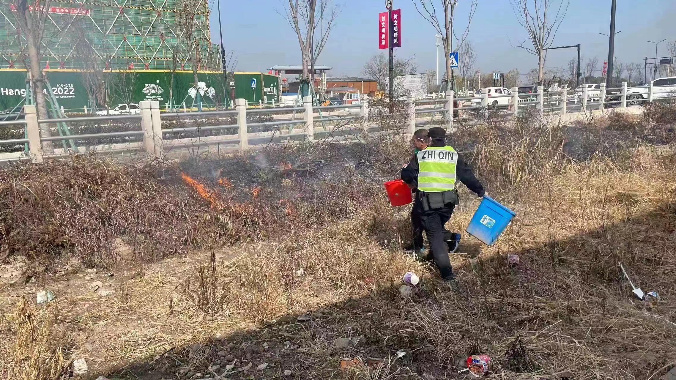 路邊雜草著火 員工及時撲滅—浙江民泰公司員工及時撲滅路邊野火