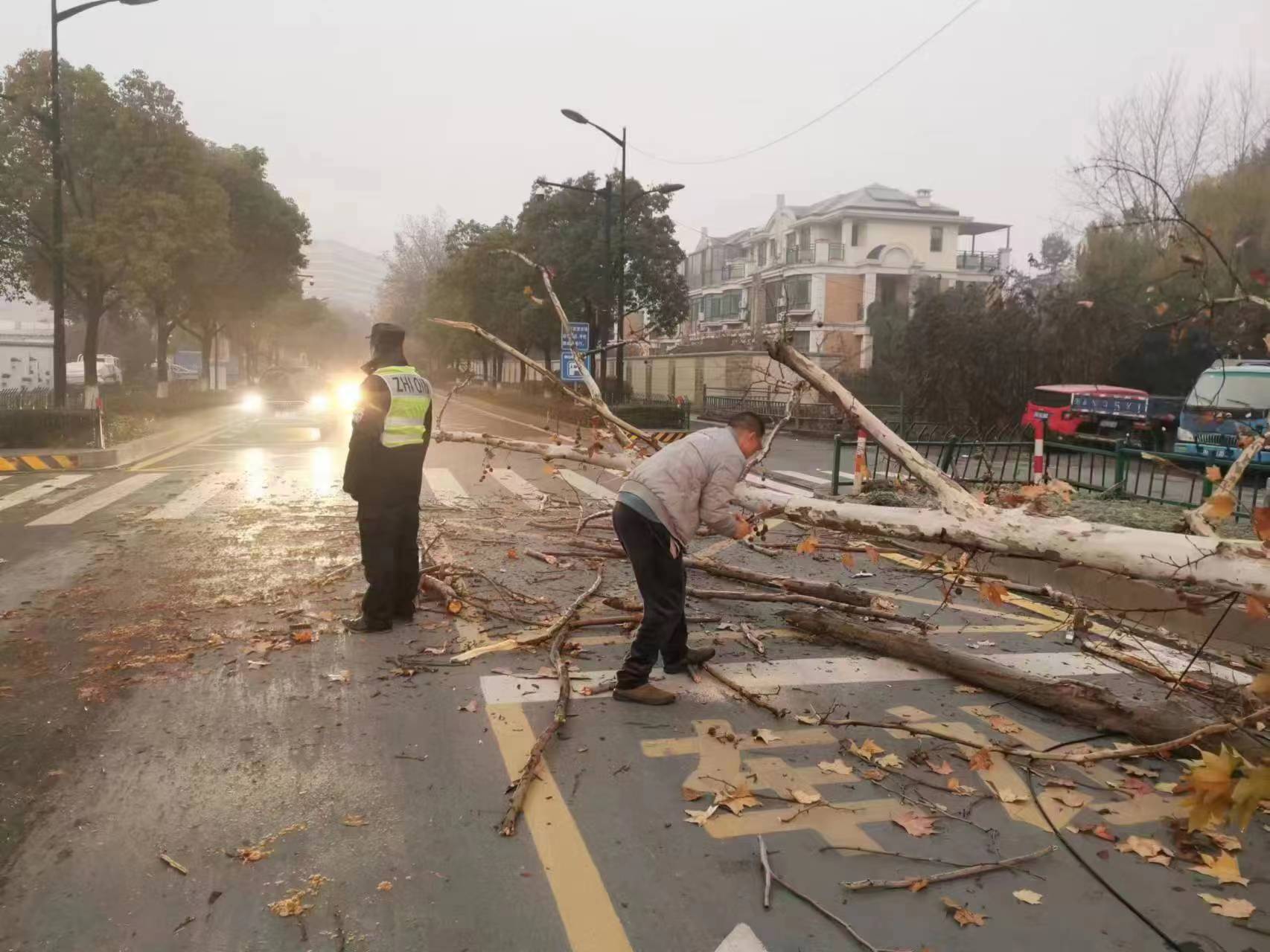 12月31日,浙江民泰公司駐杭州市余杭區(qū)五常市容項(xiàng)目員工協(xié)助清理倒地樹木。