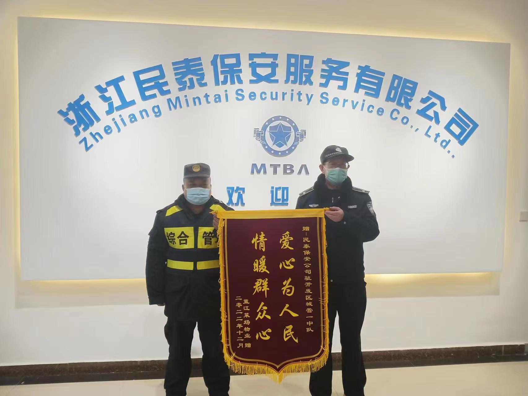 12月30日,浙江民泰公司駐杭州市臨平區(qū)東湖市容項目收到藍江菜場物業(yè)公司送來的一面繡有“愛心為人民 情暖群眾心”的錦旗,對民泰公司提供的優(yōu)質(zhì)服務(wù)給予了充分肯定和贊揚。