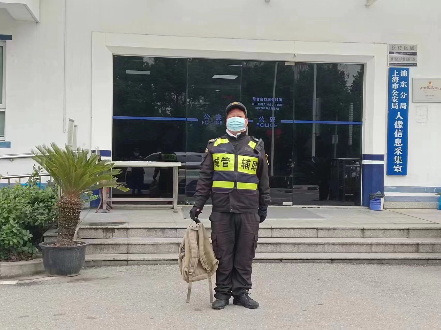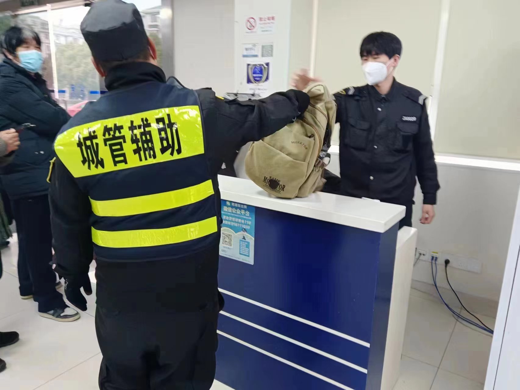 2月7日,宗保公司駐浦東新區(qū)周浦鎮(zhèn)市容項(xiàng)目員工撿到背包上交派出所尋找失主。
