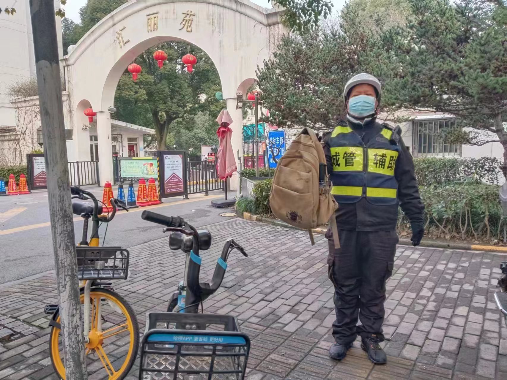 當(dāng)日7:09,公司員工劉韌在關(guān)岳路匯麗苑門(mén)口巡邏時(shí),發(fā)現(xiàn)在一輛共享單車(chē)上有一個(gè)背包和一把雨傘,而單車(chē)周?chē)鷽](méi)人,便立即將情況上報(bào)班組長(zhǎng),并按指示在原地等待。