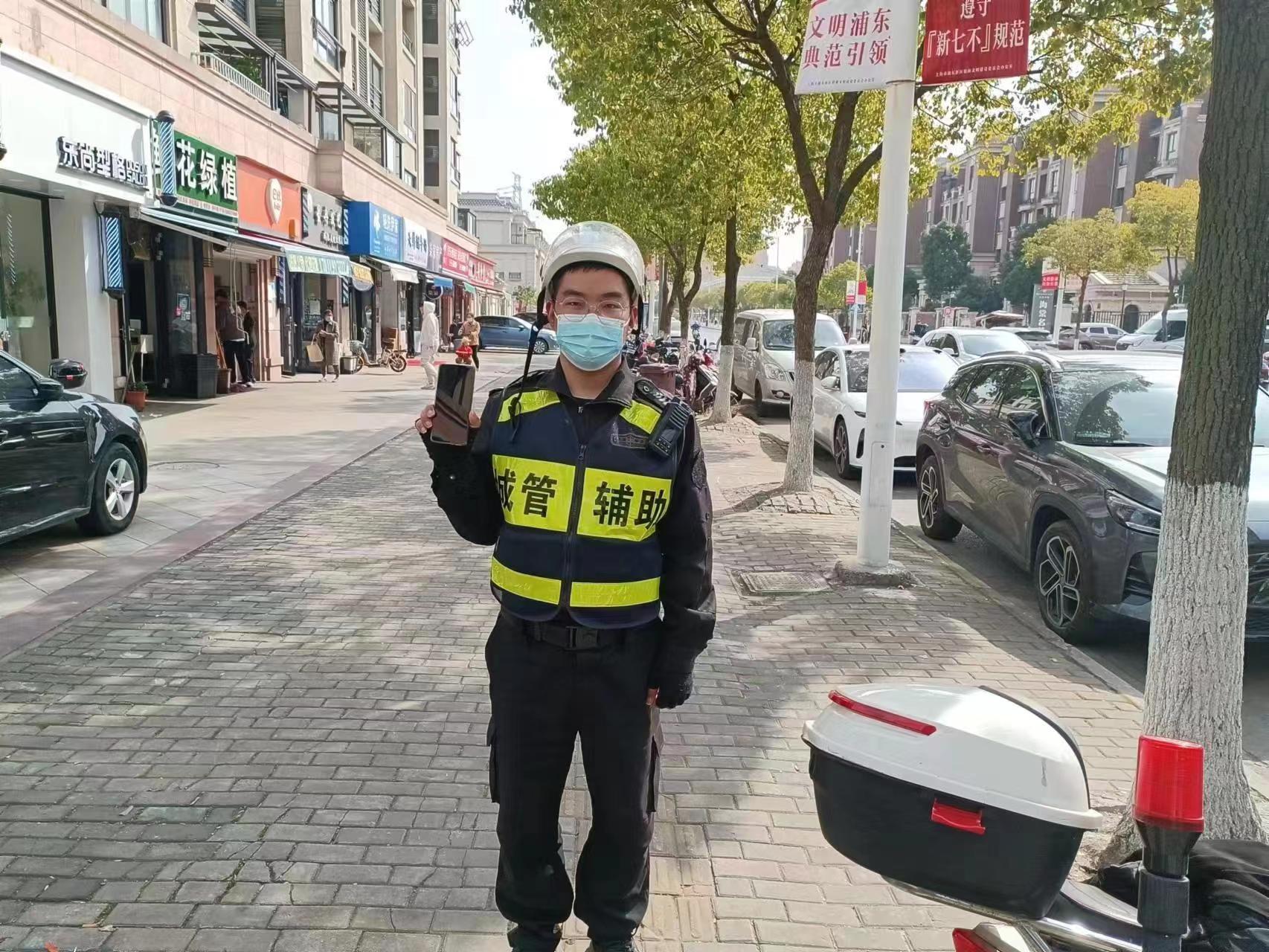 當(dāng)天9:40,公司員工王軍營在沈梅東路海棠名苑門口整理亂停放共享單車時(shí),撿到一部華為手機(jī)。王軍營詢問了周圍人,沒能找到失主,便將手機(jī)上交到周浦城管中隊(duì)。