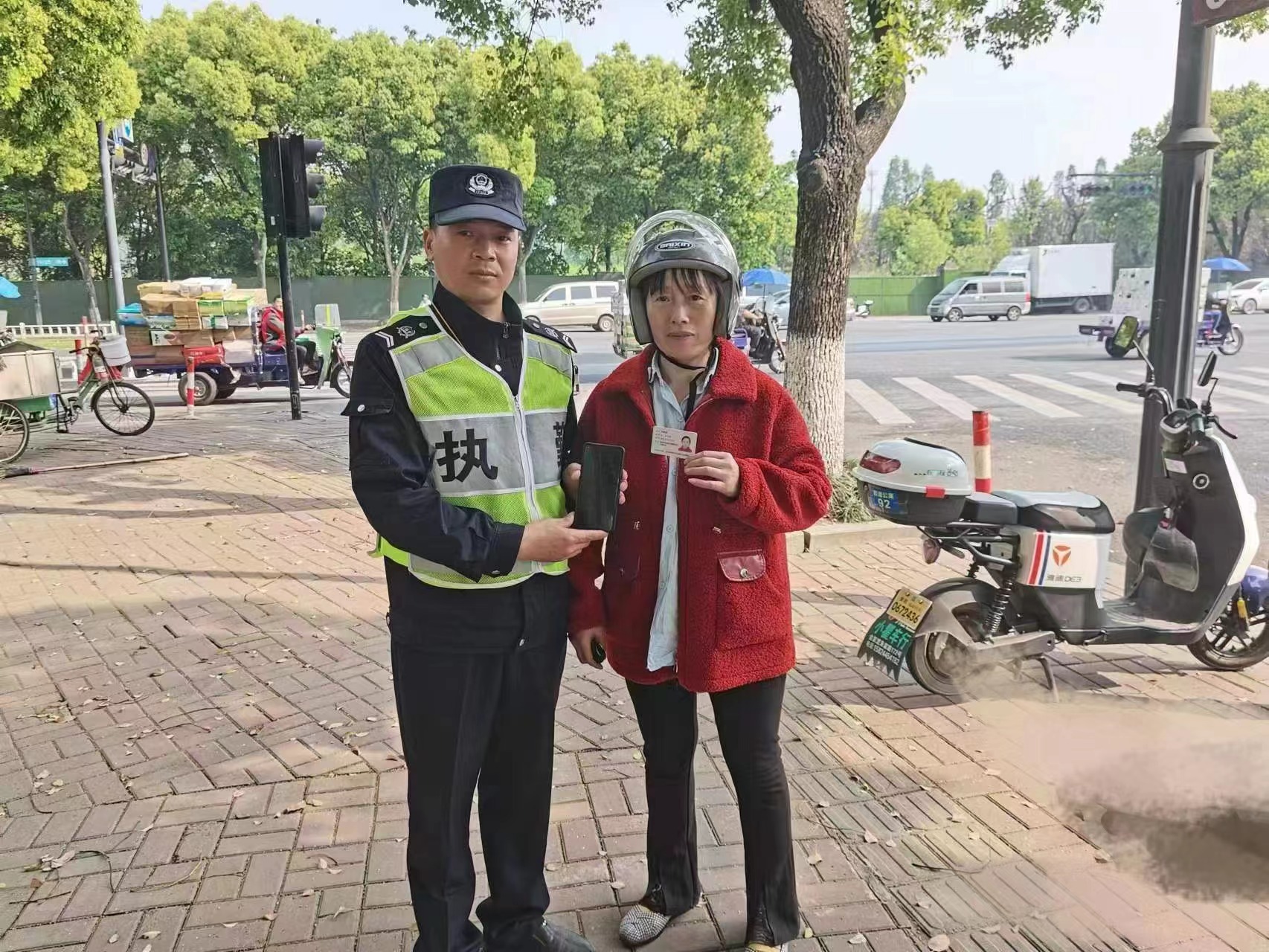 很快,一位身穿紅衣的女子和她老公趕了過來,經(jīng)核實(shí)確認(rèn)女子是失主后,徐友福將手機(jī)交還給了她。女子老公臨來時(shí)專門買了兩包香煙要表示感謝,被徐友福婉言謝絕了。女子和她老公離開前,再三向徐友福道謝。