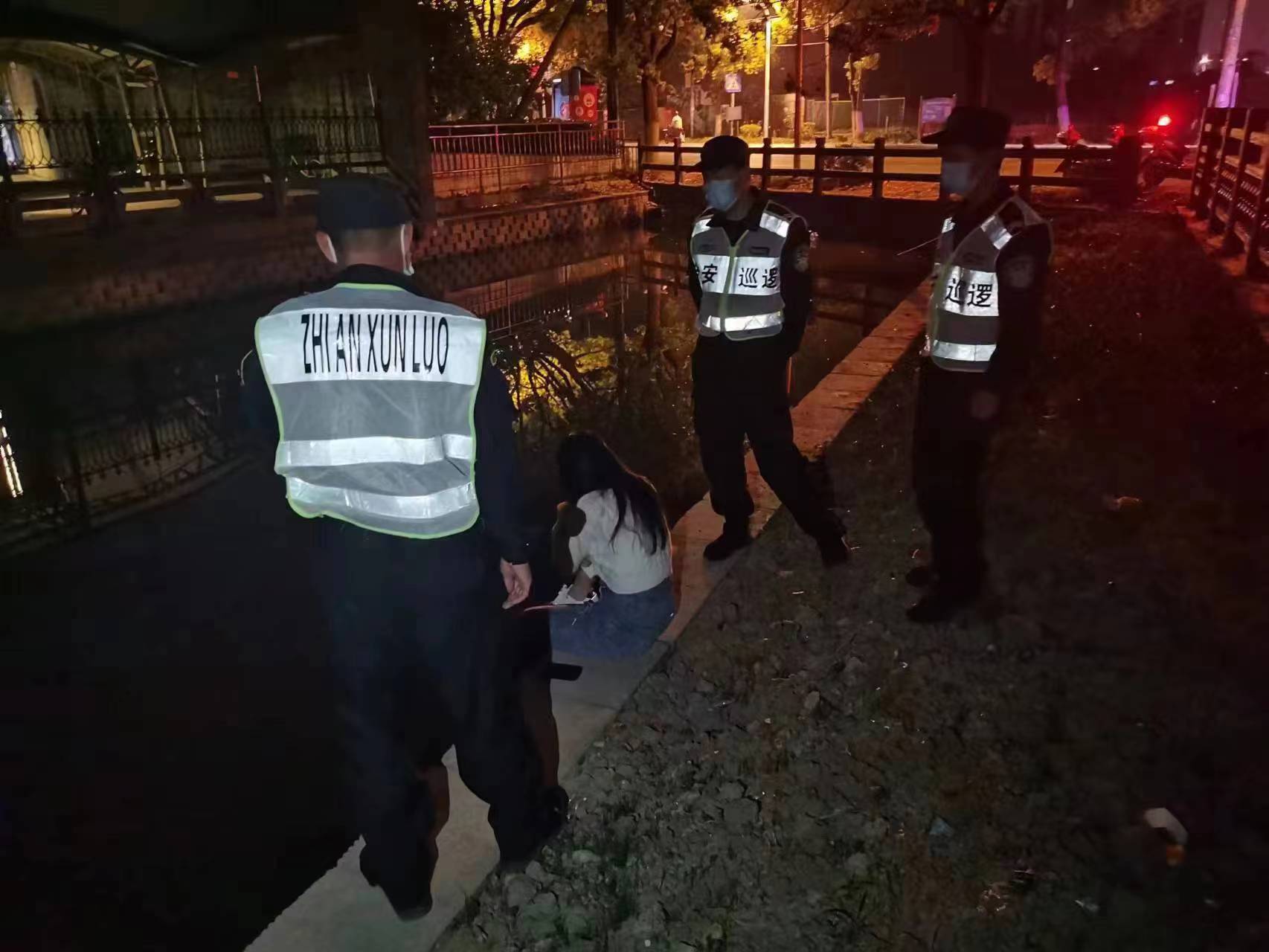 當晚21:00,公司員工孔志強、陳小豹和尹向陽在孫橋中學河道附近巡邏時,發(fā)現(xiàn)一位身穿白色T恤的女子獨自坐在河岸邊痛哭。