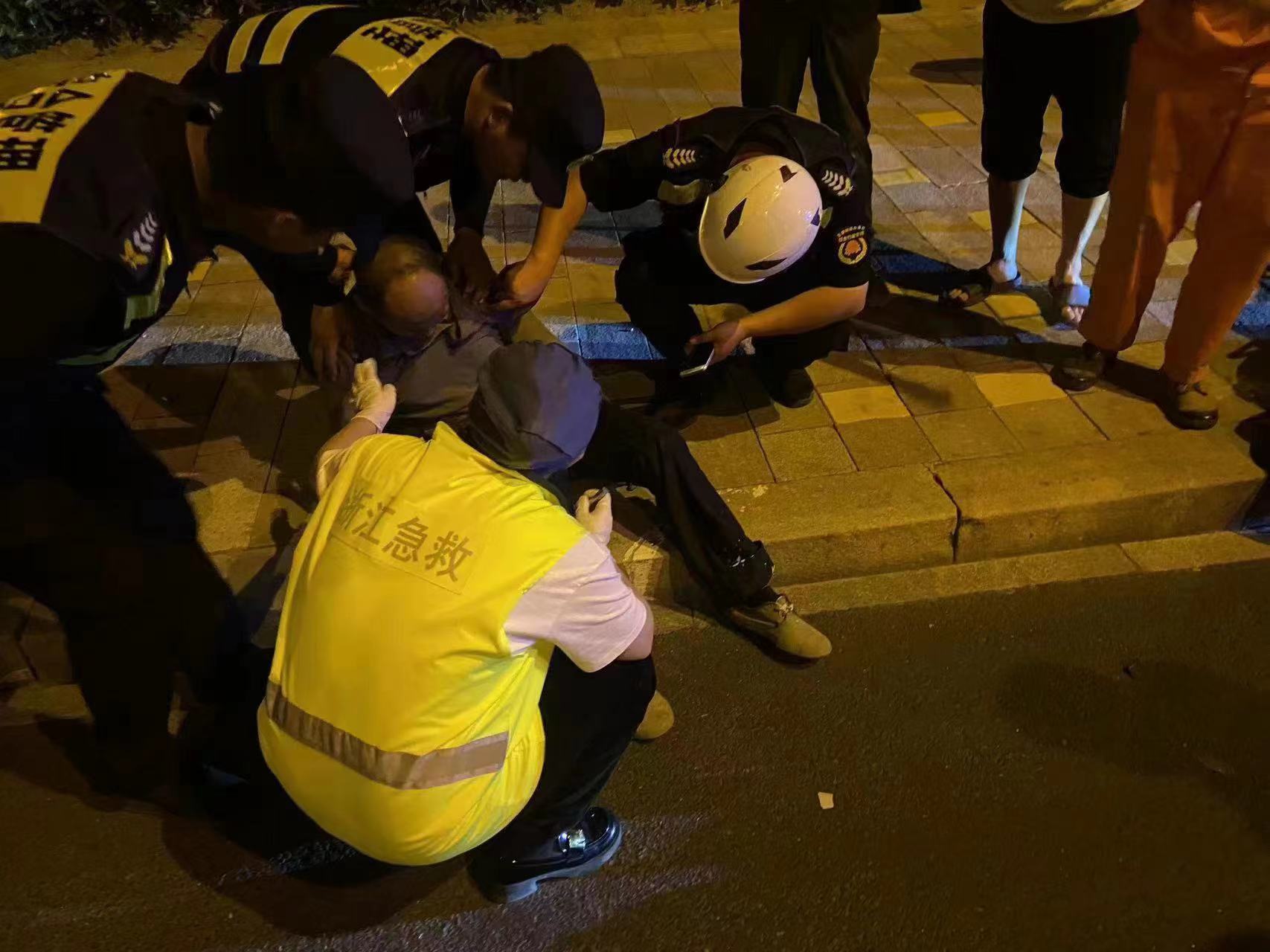 當天19:00,公司員工熊平安和孟顏在聚橙路尋港街巡邏時,看到一位老人躺在人行道上,一輛電動車倒在一旁,便立即上前察看。