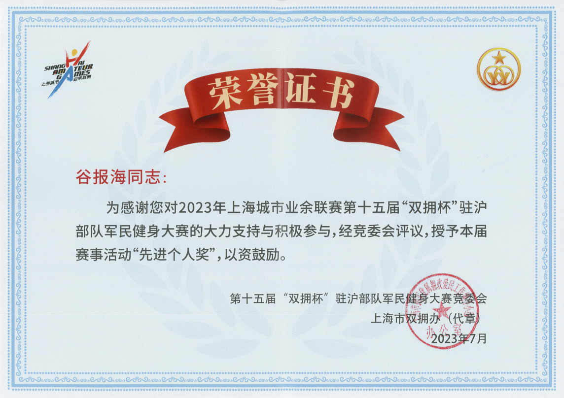中國人民解放軍建軍96周年之際,為進(jìn)一步踐行習(xí)總書記關(guān)于雙擁工作和體育工作的重要論述,以黨的二十大精神為指導(dǎo),由市擁軍優(yōu)屬擁政愛民工作領(lǐng)導(dǎo)小組辦公室、上海警備區(qū)政治工作局、市體育局、市擁軍優(yōu)屬基金會(huì)主辦的以“牢記使命礪精兵,健身強(qiáng)軍爭第一”為主題的第十五屆“雙擁杯”駐滬部隊(duì)軍民健身大賽,于6月27日至7月9日在軍地各單位駐地陸續(xù)展開,宗保公司作為退役軍人創(chuàng)辦企業(yè)參加大賽。