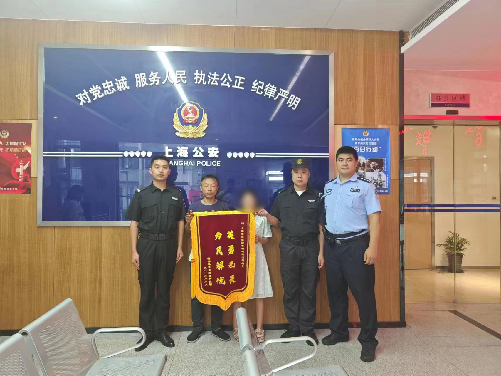 8月5日,宗保公司駐浦東新區(qū)臨港新城派出所輔助項(xiàng)目收到市民李先生送來(lái)的繡有“英勇無(wú)畏 為民解憂”的錦旗,感謝宗保員工李漢濤8月3日晚不顧海灘路況復(fù)雜,不嫌麻煩可能區(qū)域細(xì)細(xì)查尋,歷經(jīng)3個(gè)多小時(shí),配合幫助報(bào)警市民李先生找到走散女兒的熱心行為。