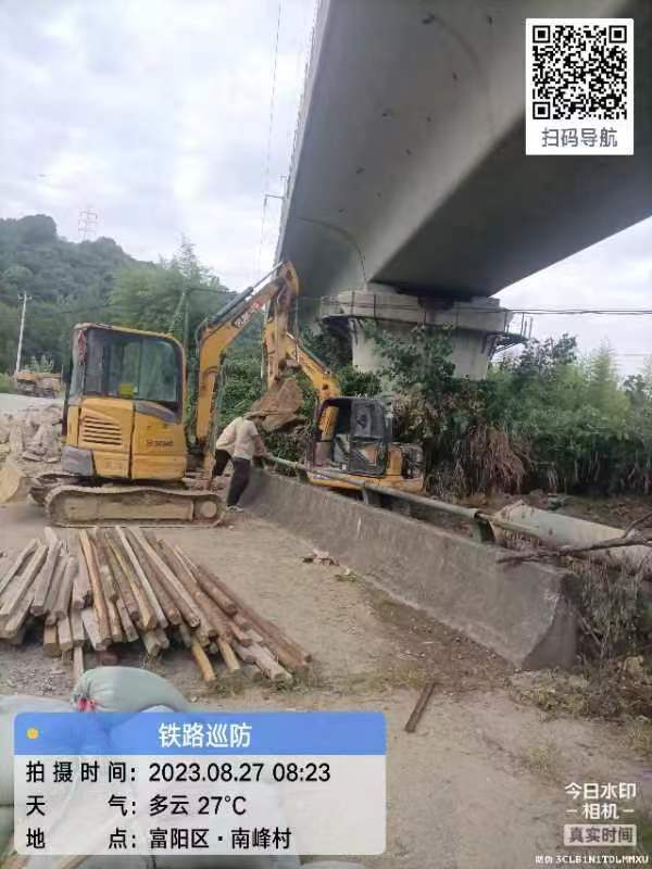 當(dāng)日8:23,公司員工王文華巡查富陽站至桐廬站區(qū)間山坎特大橋k52+017線路時,發(fā)現(xiàn)有挖掘機(jī)正在鐵路橋邊紅線區(qū)域內(nèi)作業(yè),涉嫌非法施工。王文華立即跑上前制止,并第一時間將情況報告杭州工務(wù)段桐廬車間、杭州鐵路公安處桐廬鐵路派出所。