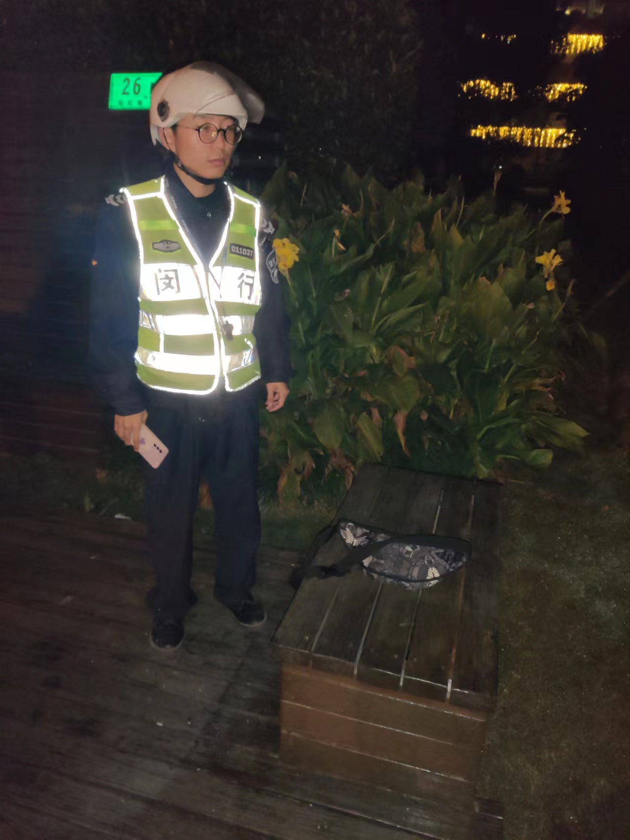 10月15日22:10,宗保公司駐閔行區(qū)新虹街道項目員工韓悅在邵虹路公交站臺值勤時,撿到一個黑色挎包,內有3張銀行卡、50多元現金和香煙等物品,但未發(fā)現失主的聯系方式。韓悅將情況報告了項目隊長,隨后來到在附近執(zhí)勤的民警那里,向民警說明情況后,就將挎包上交給了民警。