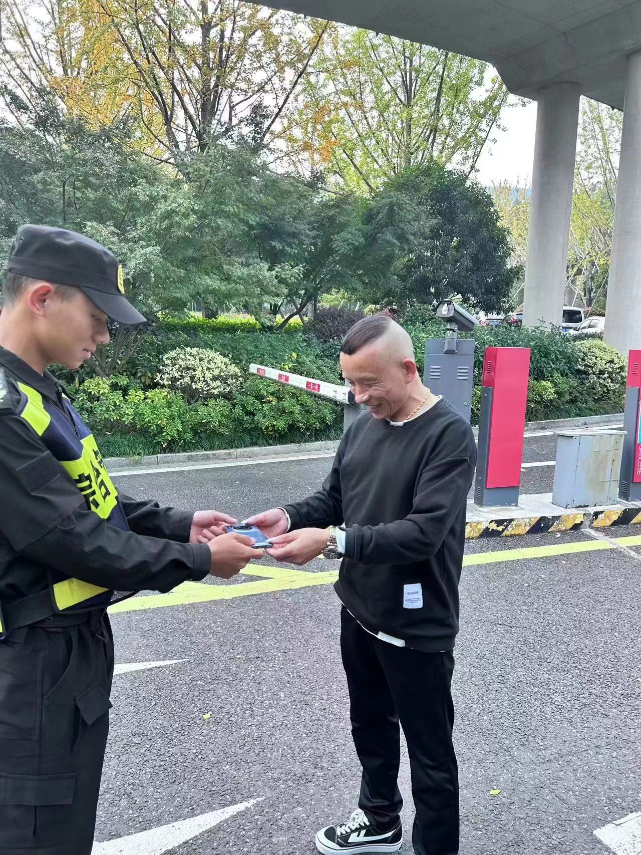 10月25日8:30,浙江民泰公司駐杭州市臨平區(qū)東湖市容項目員工熊洋錸在星光街彩虹橋巡查時,撿到一部華為Mate30手機。熊洋錸詢問周圍人員后,便將情況報告了帶班組長,并留在原地等待。大概過了20分鐘,一男子打來電話尋找手機,熊洋錸問了問手機的顏色、型號,便與他約好碰面的時間地點。很快,一位身穿黑色衣服的男子趕到約定地點。熊洋錸核對好手機型號、顏色、鎖屏密碼等信息,確認男子是失主后,就將手機交還給了他。