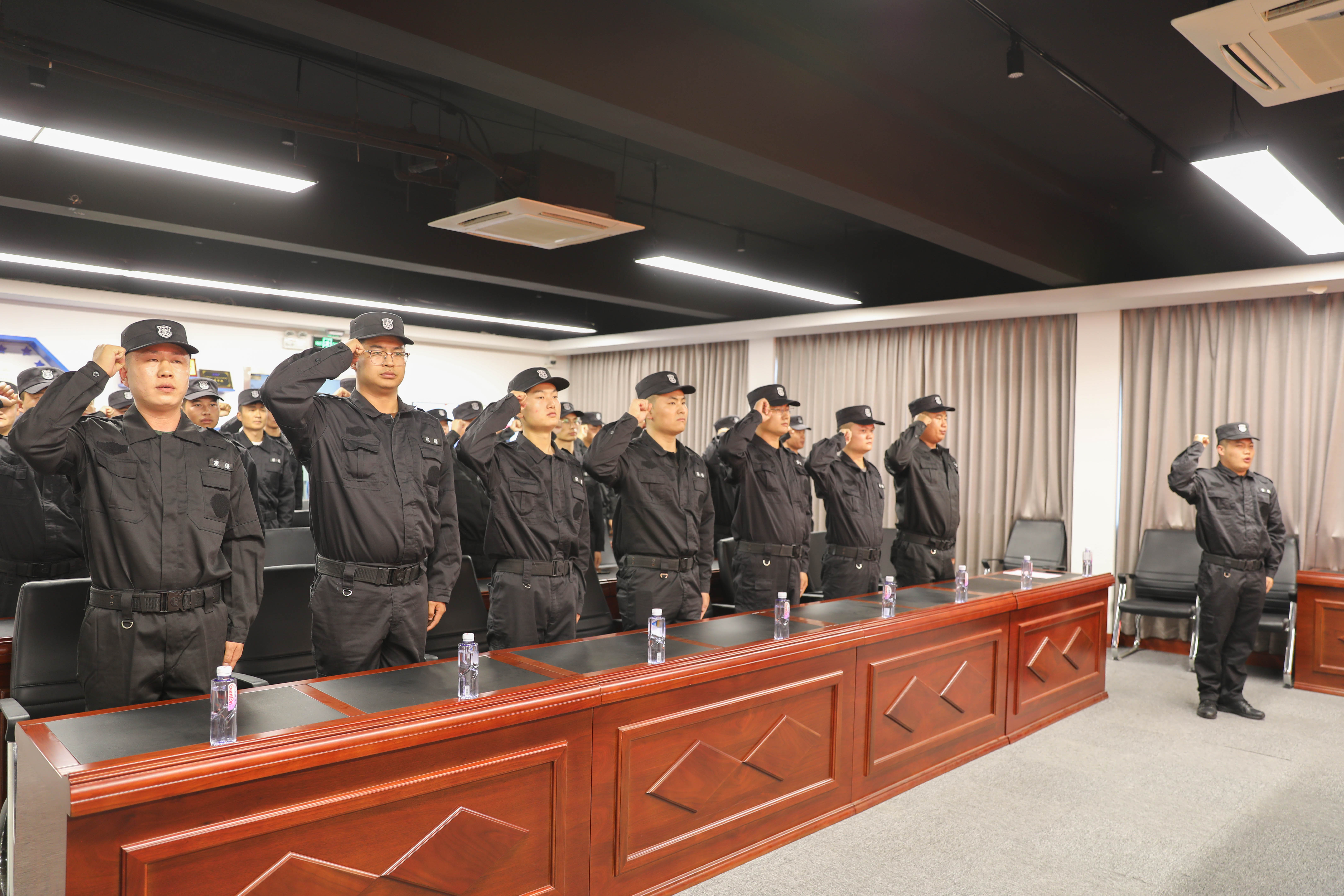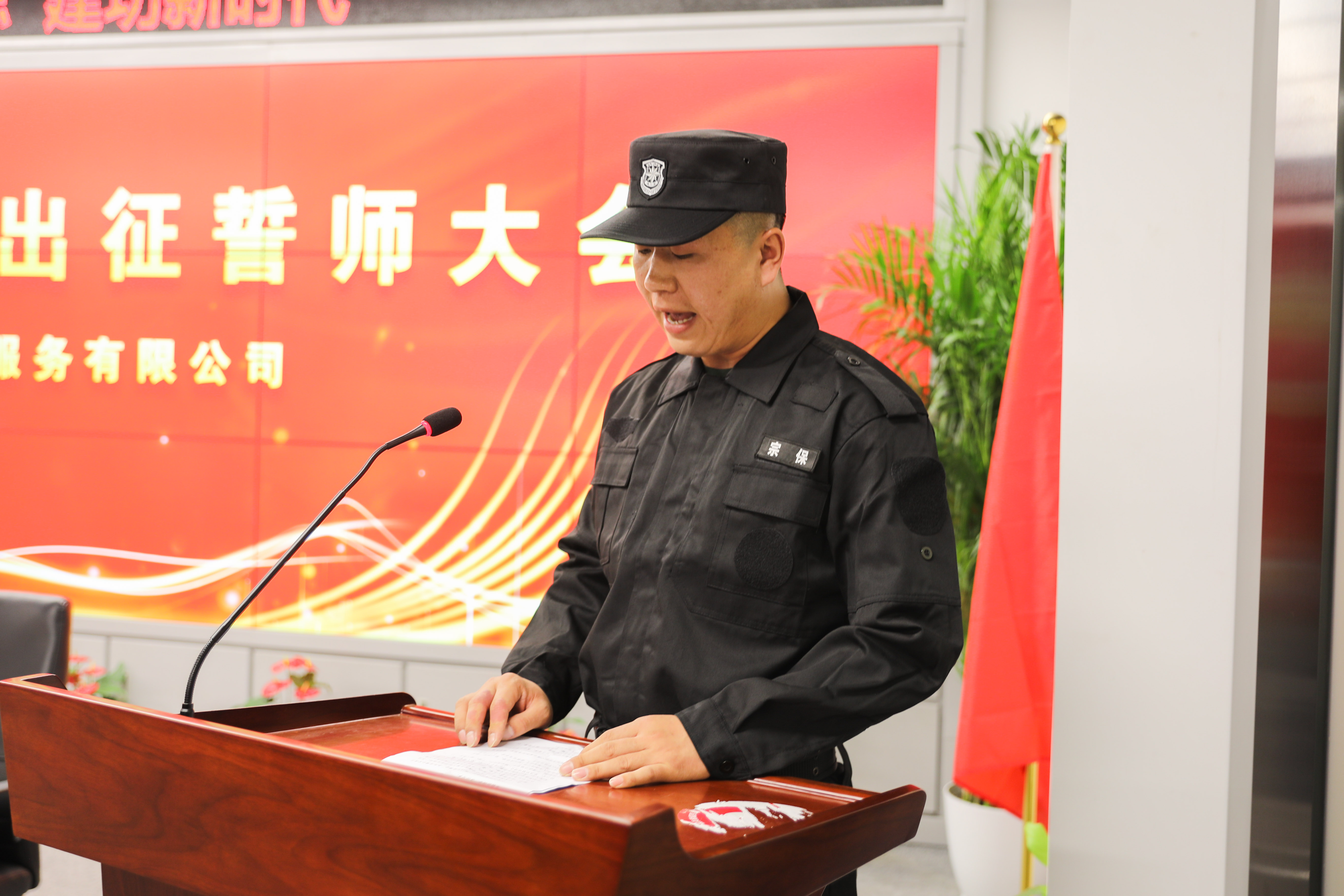 接著,公司員工栗閃召代表全體參與進(jìn)博安保員工表決心。隨后,全體參與進(jìn)博安保的員工舉起右手,在帶隊(duì)骨干程澤昆的領(lǐng)誓下宣誓:我志愿參加第六屆進(jìn)博會(huì),服從命令,聽從指揮,嚴(yán)守公司紀(jì)律,遵守公司各項(xiàng)規(guī)章制度;服從進(jìn)博會(huì)現(xiàn)場管理......,展示 “宗保人”風(fēng)采,高標(biāo)準(zhǔn),嚴(yán)要求,展示公司形象,維護(hù)公司聲譽(yù),堅(jiān)決完成進(jìn)博會(huì)安保任務(wù)。