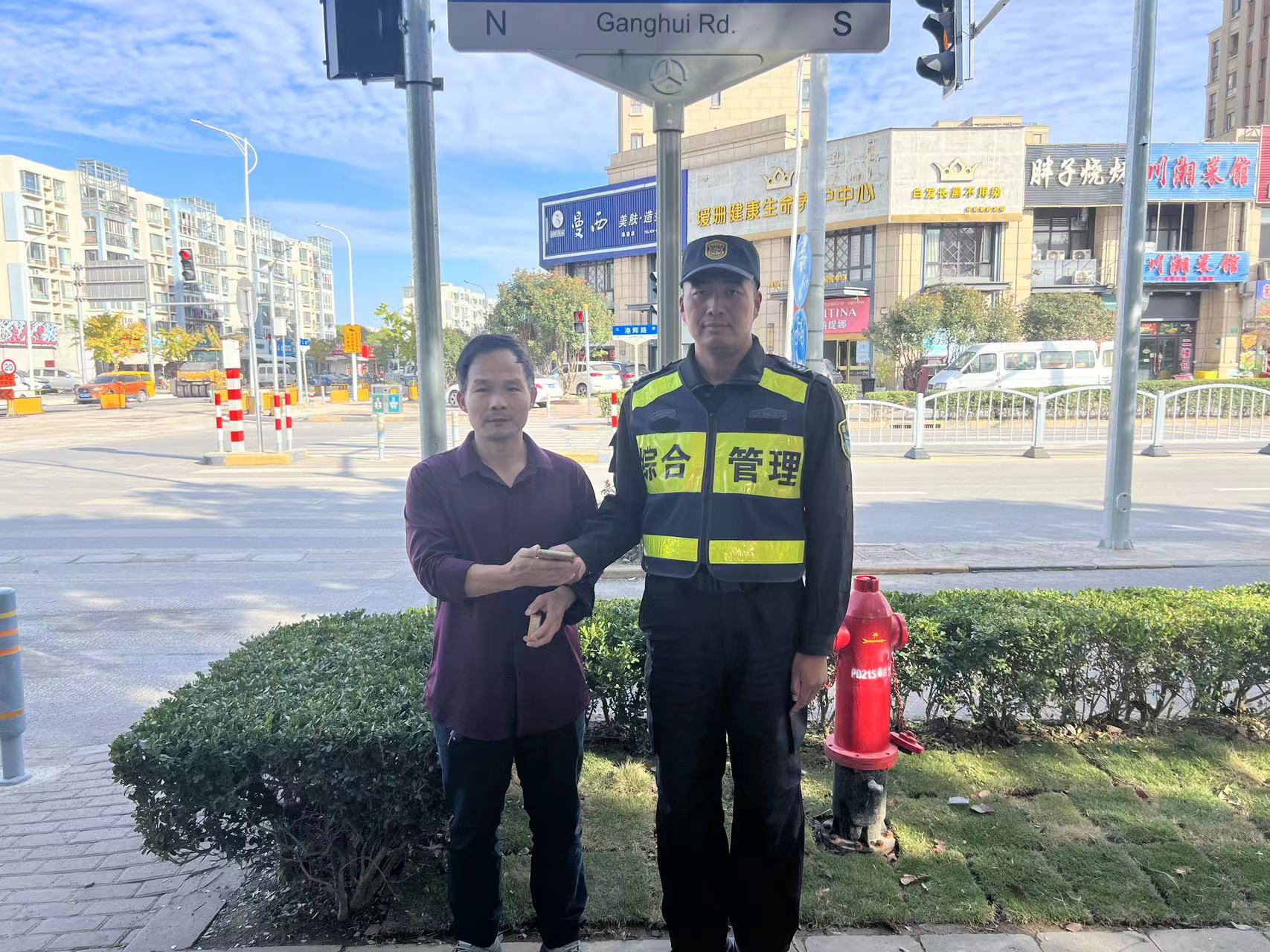 10月28日14:40,宗保公司駐浦東新區(qū)蘆潮港市容項目員工滿其安在港輝路與蘆云路紅綠燈交叉口巡查時,撿到一部華為手機(jī)。滿其安詢問周圍人員無果后,將情況報告了帶班組長,并留在原地等待。大概過了20分鐘,一男子打來電話尋找手機(jī),滿其安詢問了手機(jī)的顏色、品牌,便與他約定好碰面地點。很快,一位男子急匆匆地趕到約定地點,滿其安核對好手機(jī)型號、顏色、鎖屏密碼等信息,確認(rèn)男子是失主后,就將手機(jī)交還給了他。