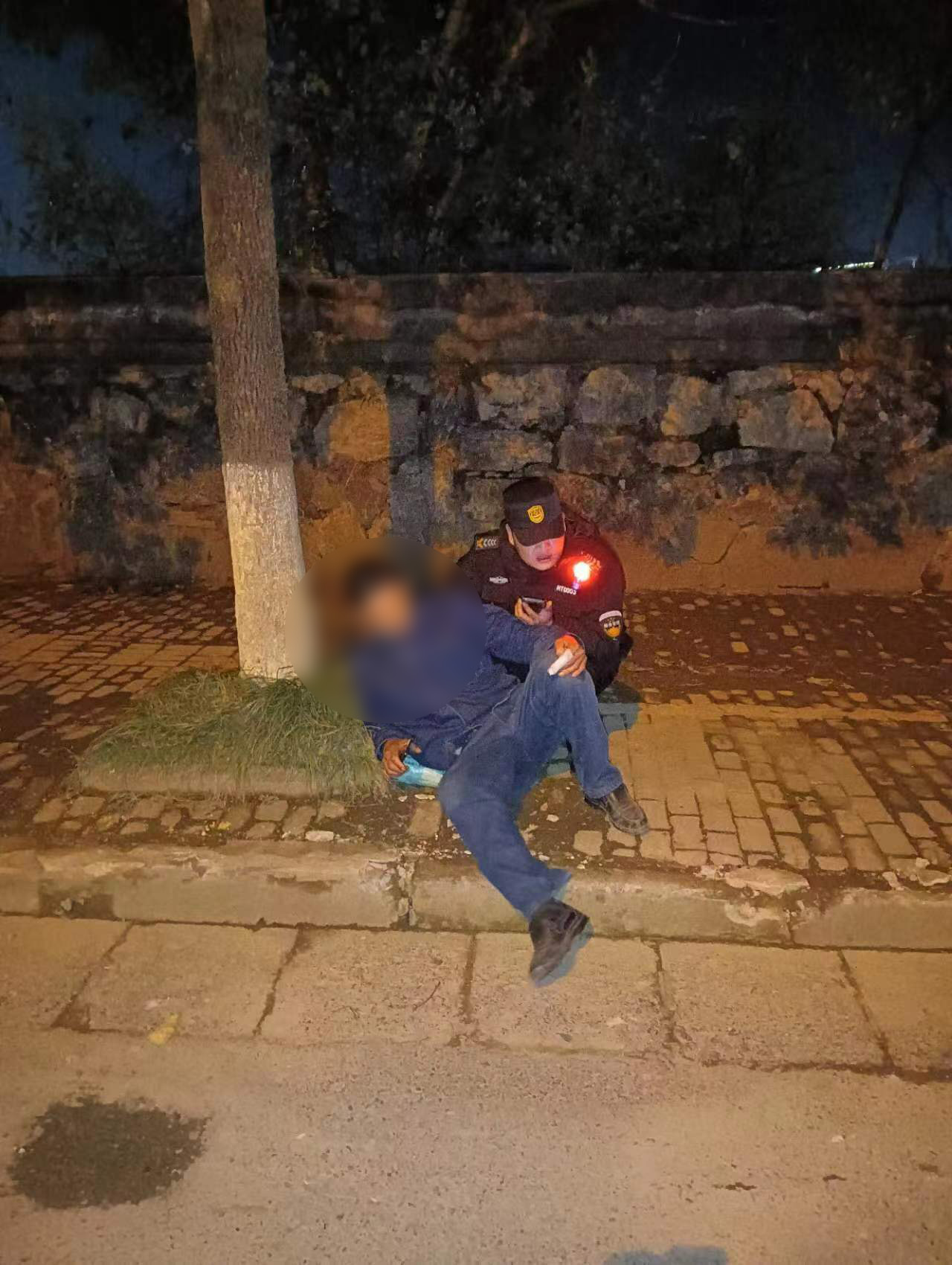 當(dāng)日19:00,公司員工馮奧、楊顯峰和周健在閑興路10號(hào)附近巡查時(shí),發(fā)現(xiàn)一男子躺在路邊,便趕緊上前察看。男子蜷縮著身體,雙手按壓著腹部,表情顯得十分痛苦。
