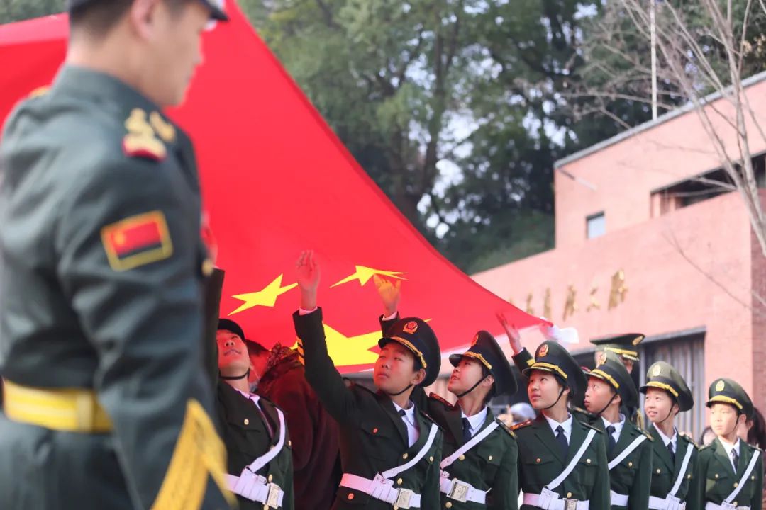 清晨旭輝的照耀下,升旗儀式正式開始。國旗護衛(wèi)隊的3位升旗手邁著整齊的正步,舉著國旗走向升旗臺。在莊嚴的國歌聲中,五星紅旗冉冉升起,全體師生齊唱國歌,深情而莊重地注視著五星紅旗,用嘹亮的歌聲表達對祖國深深的熱愛。