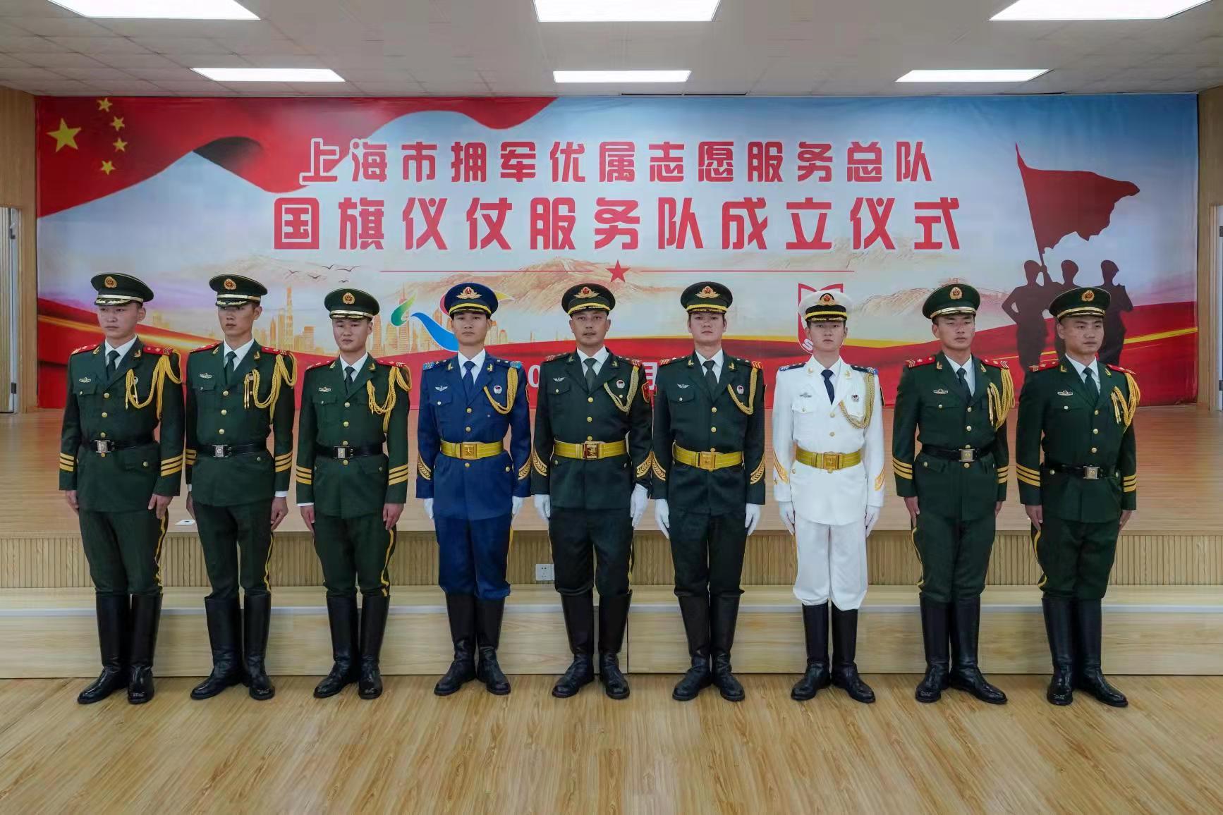 執(zhí)行此次升旗任務(wù)的國旗護衛(wèi)隊是上海市擁軍優(yōu)屬基金會志愿服務(wù)總隊下屬的第八志愿者服務(wù)隊,其100名成員全部由上海宗保保安服務(wù)有限公司的優(yōu)秀退役軍人員工組成。