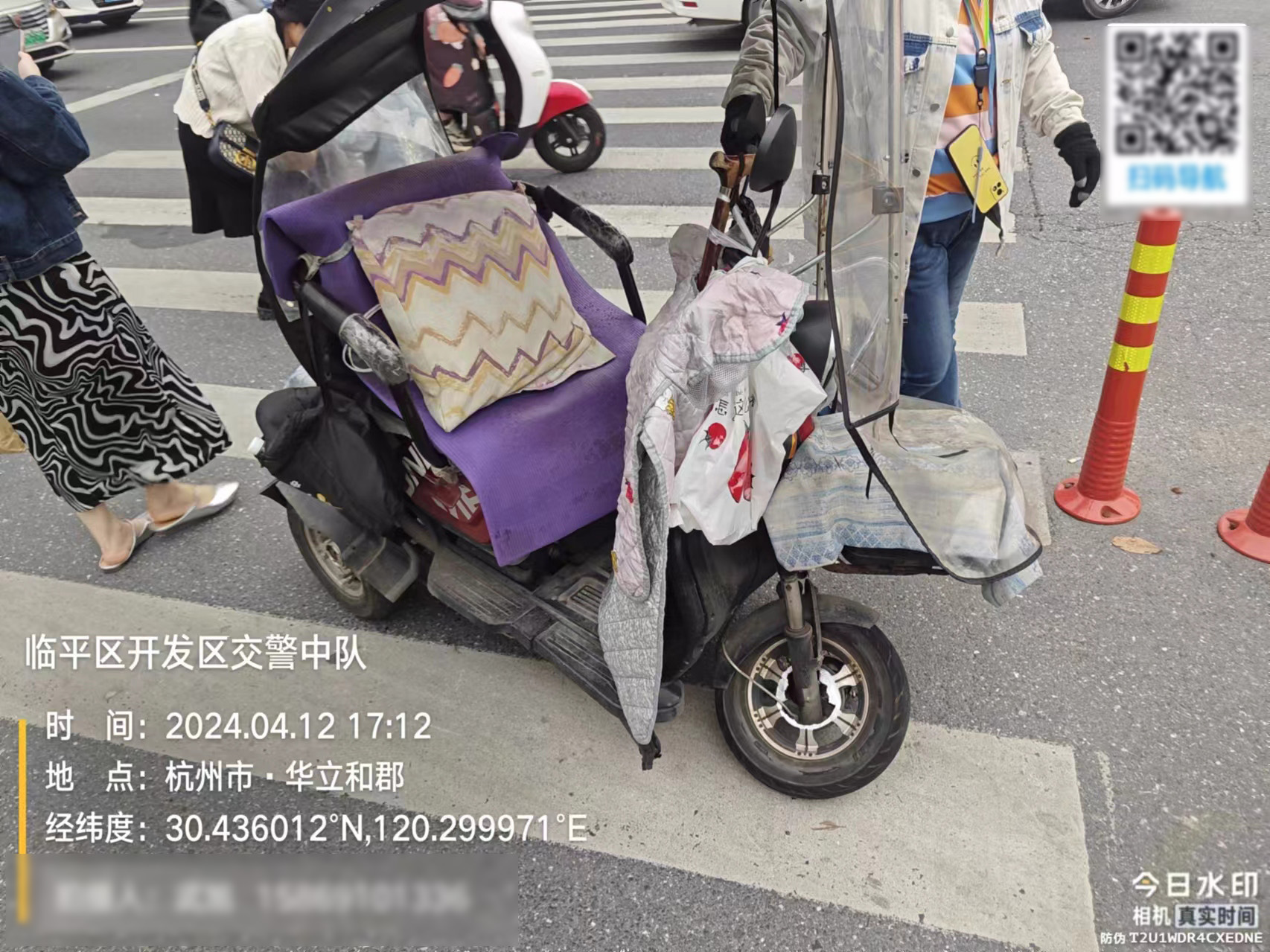 4月12日,浙江民泰公司駐杭州市臨平區(qū)東湖交管輔助項目員工熱心幫助代步車女士。