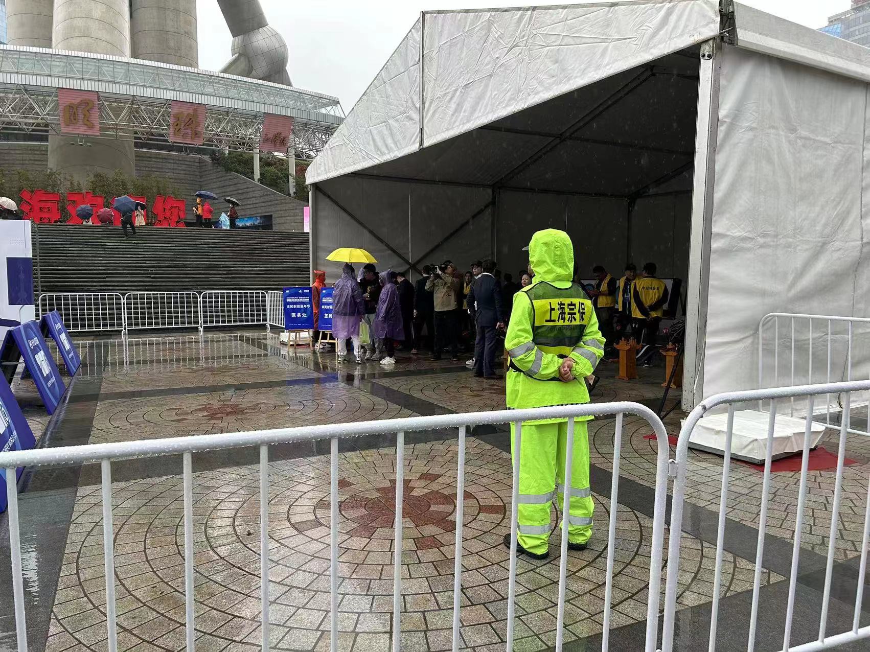 活動(dòng)當(dāng)天申城持續(xù)降雨,全體安保人員不懼風(fēng)雨、堅(jiān)守崗位,協(xié)助舉辦方做好人流疏導(dǎo)、場(chǎng)地巡查等秩序維護(hù)工作,助力完成了2024射箭世界杯賽上海站市民射箭嘉年華啟動(dòng)儀式安保任務(wù)。