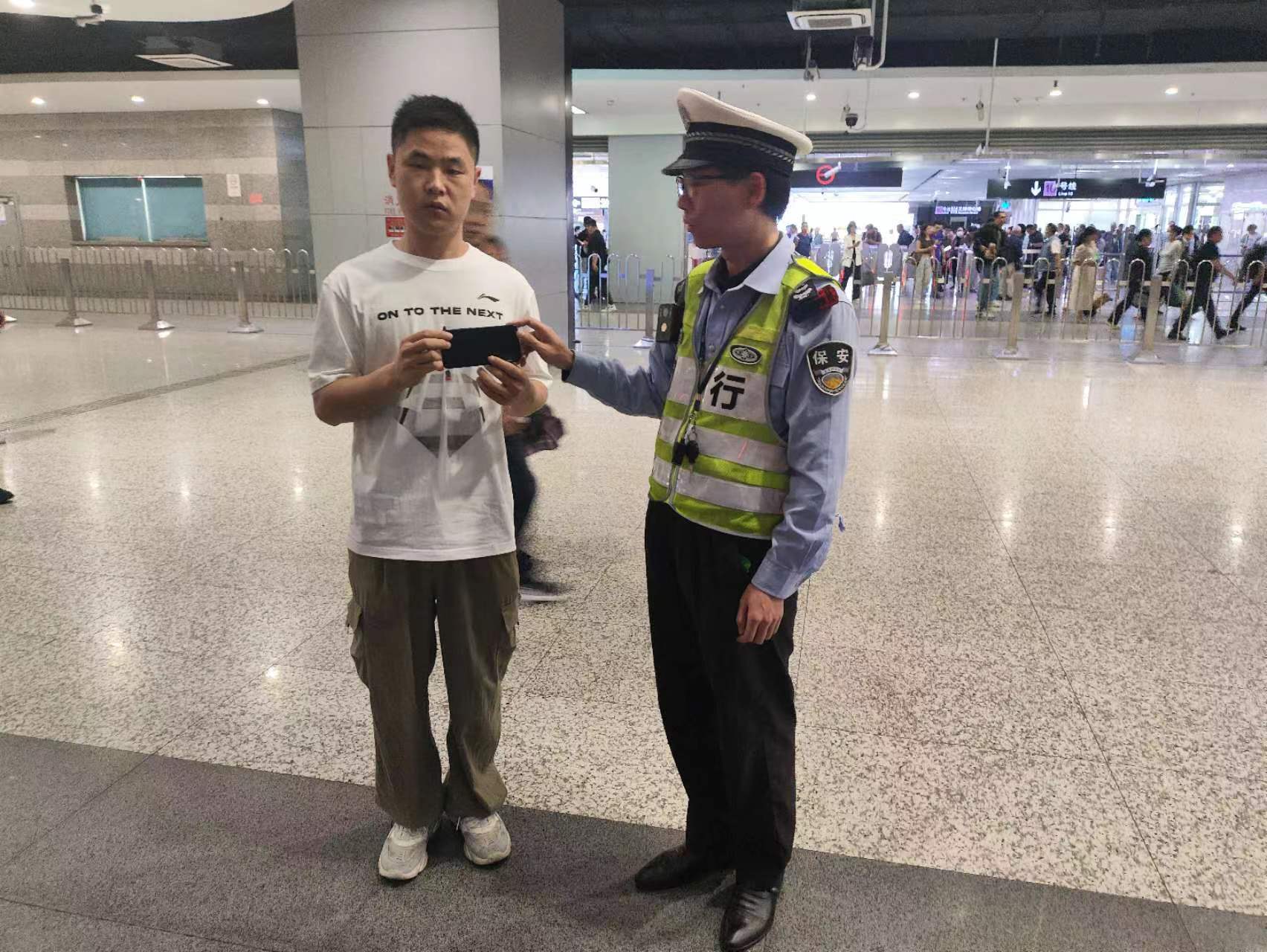 6月6日9:45,宗保公司駐閔行區(qū)交通委項目員工鄭靖在閔行虹橋客運西站執(zhí)勤時,撿到一部榮耀手機,報告班組長后便在原地執(zhí)勤等待。過了一會,一位自稱是失主的男子打來電話,語氣顯得十分焦急。鄭靖細聽男子所述后,就與男子約定了碰面地點。12:00左右,一男子趕到現(xiàn)場領(lǐng)取手機,鄭靖確認了其相關(guān)信息,隨即將手機交還給了他。男子非常高興,激動地連連向宗保員工致謝。