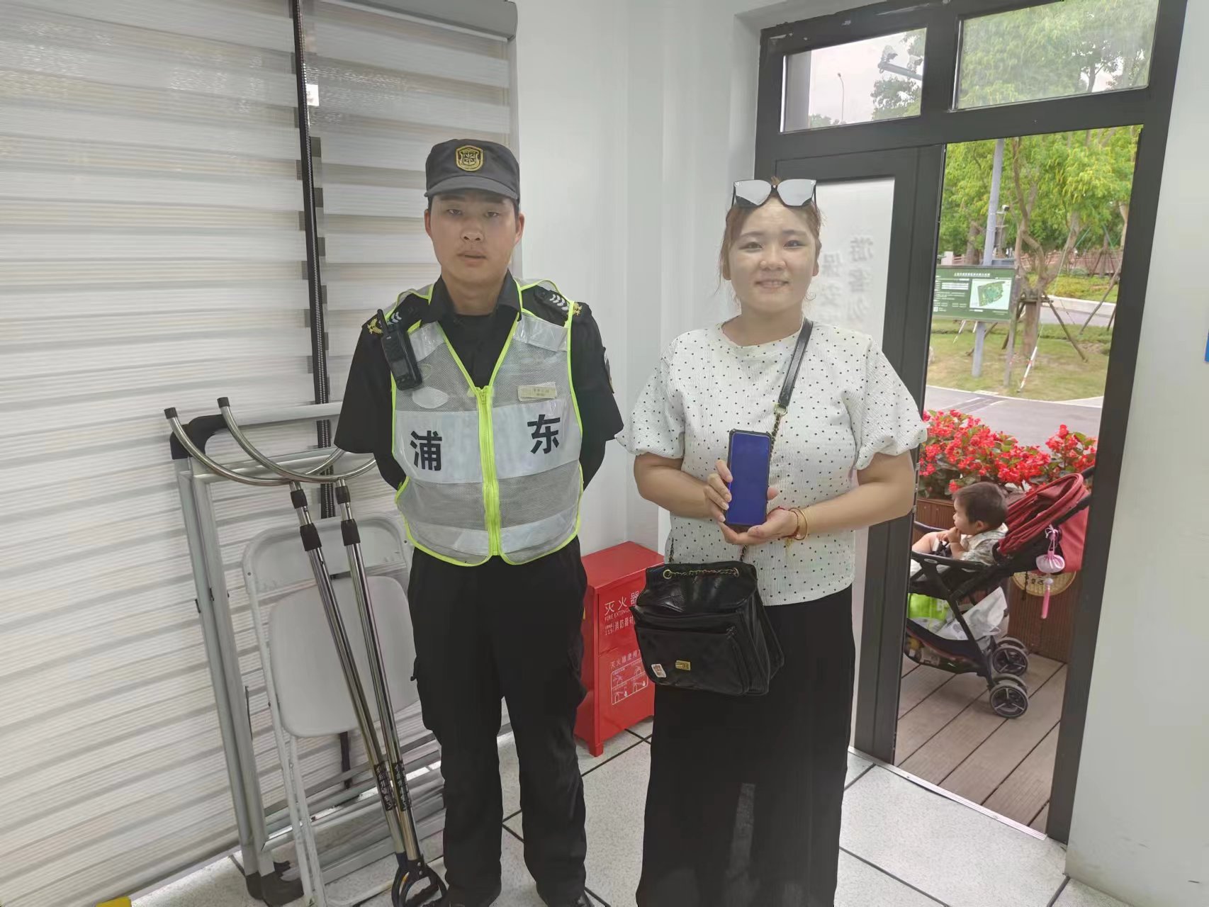 6月18日8:00,宗保公司駐閔行區(qū)華漕護校項目員工薛榮超在北翟路華江路交叉口執(zhí)勤時,撿到一部蘋果13手機,詢問路人無果后,便將情況報告了項目負責人,并按指示在原地等待。等了10分鐘左右,一位身穿防曬衣的女子趕到路口說是尋找手機。薛榮超確認女子是失主后,就把手機交還給了她。女子拿著手機十分高興,再三向宗保員工表示感謝。