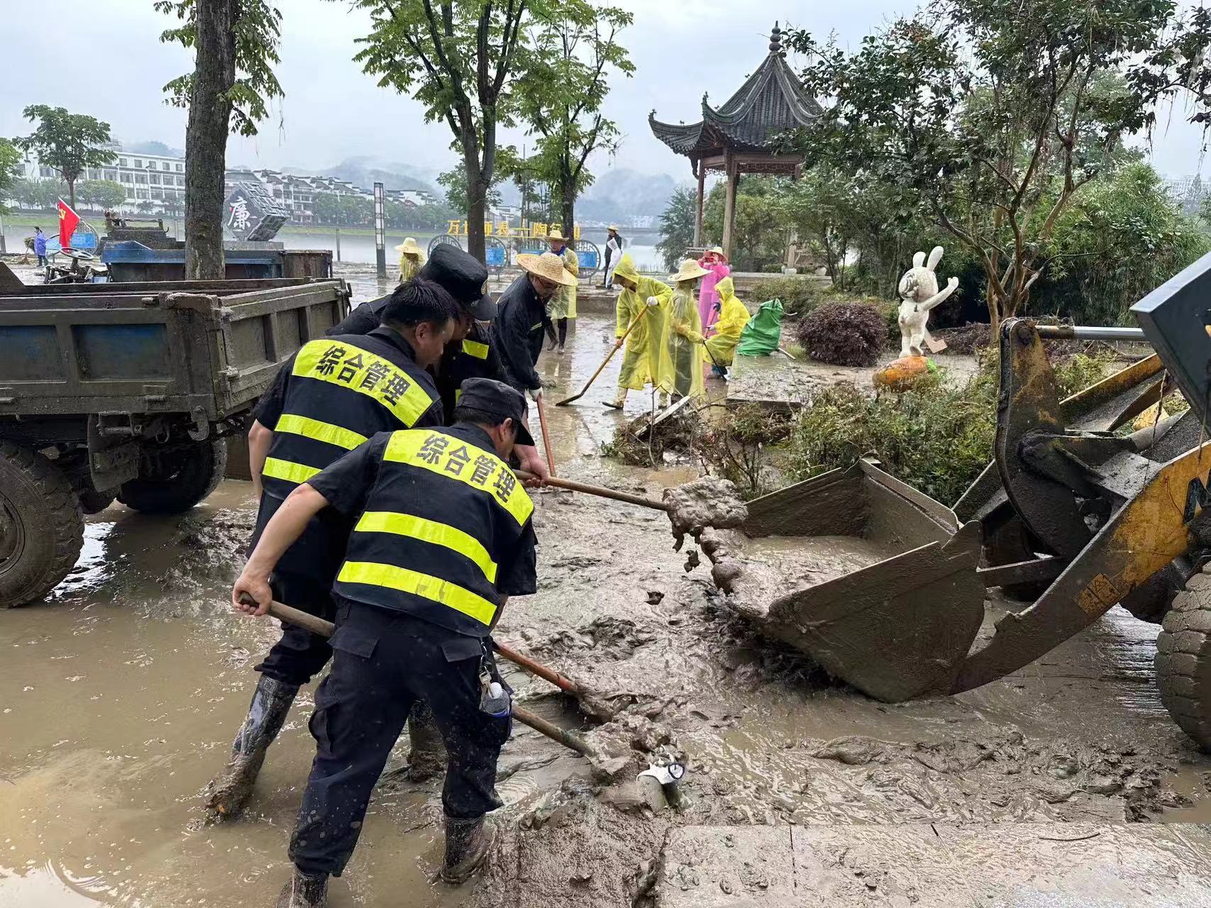 6月20日,安徽黃山市普降大暴雨,河流猛漲,山洪暴發(fā),歙縣多處路段出現(xiàn)積水,公司駐歙縣市容項目接到縣城管局抗洪救災(zāi)要求后,立即開展抗洪搶險救援。他們協(xié)助轉(zhuǎn)移受困群眾,全力清理垃圾淤泥,仔細排查隱患區(qū)域,用實際行動展現(xiàn)了公司員工的良好形象。