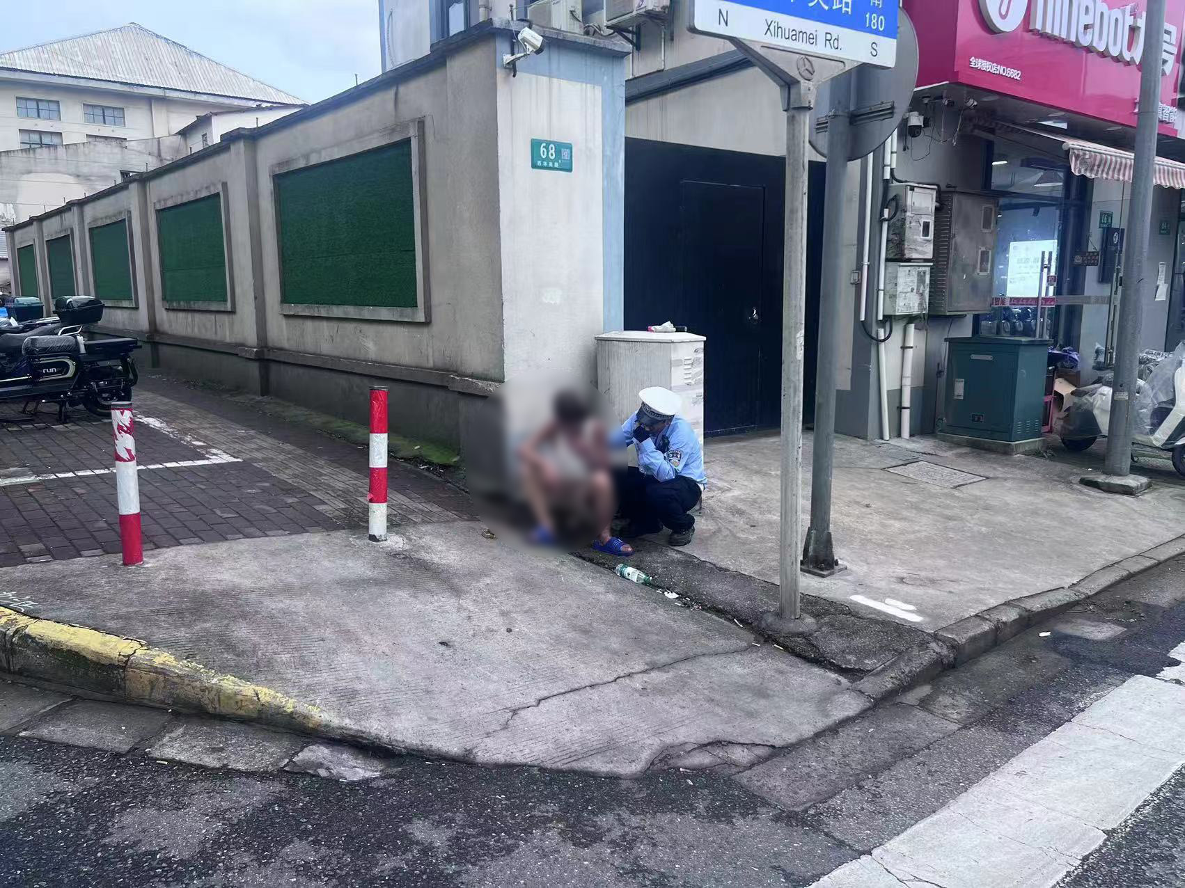 當(dāng)日18:00,宗保公司員工楊智豪在北翟路華江路交叉口執(zhí)勤時,發(fā)現(xiàn)人行道上躺著一位老人,便立即上前察看。