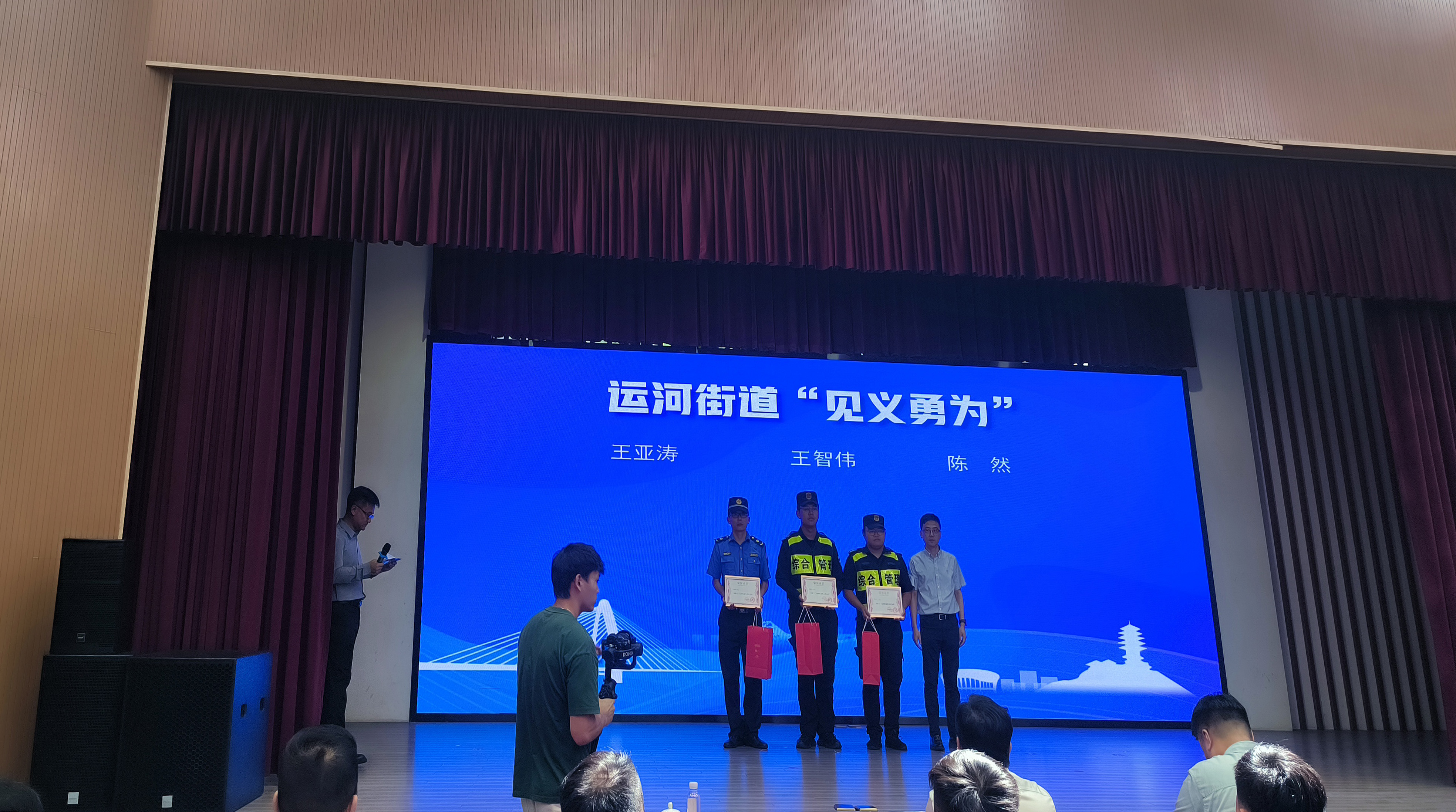 9月14日,浙江民泰公司駐杭州市臨平區(qū)運(yùn)河市容項(xiàng)目3名員工被運(yùn)河街道黨工委、辦事處授予“運(yùn)河街道見義勇為獎(jiǎng)”。