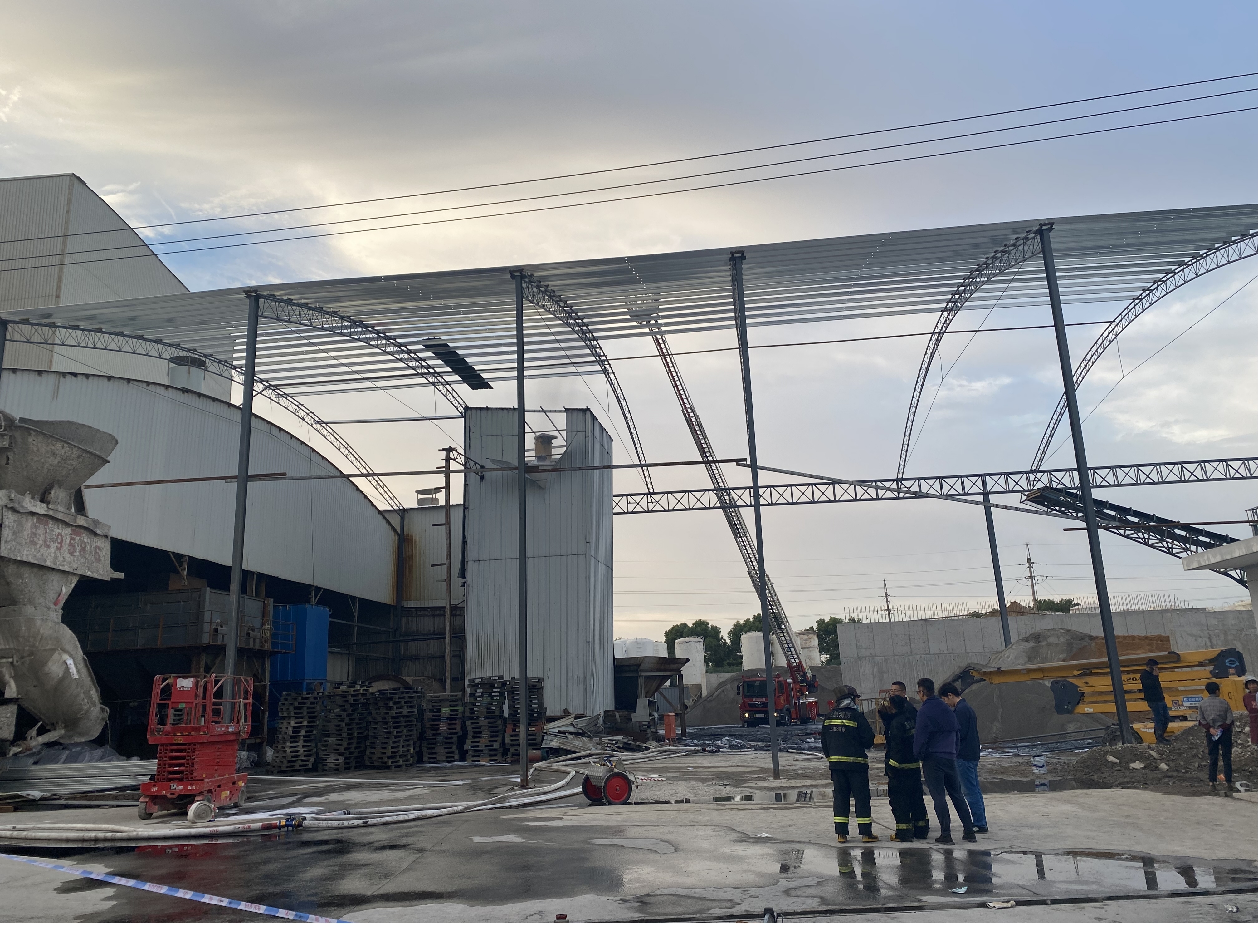 面對這一復雜火情,公司員工立即向指揮中心報告了現(xiàn)場情況,并馬上疏散現(xiàn)場人員至安全區(qū)域。消防救援中隊到場后,消防隊員快速搭起水帶,利用云梯出水持續(xù)給攪拌機外壁降溫,以控制火勢蔓延。在此過程中,公司陸橋分站員工負責外圍警戒,確?,F(xiàn)場安全有序。