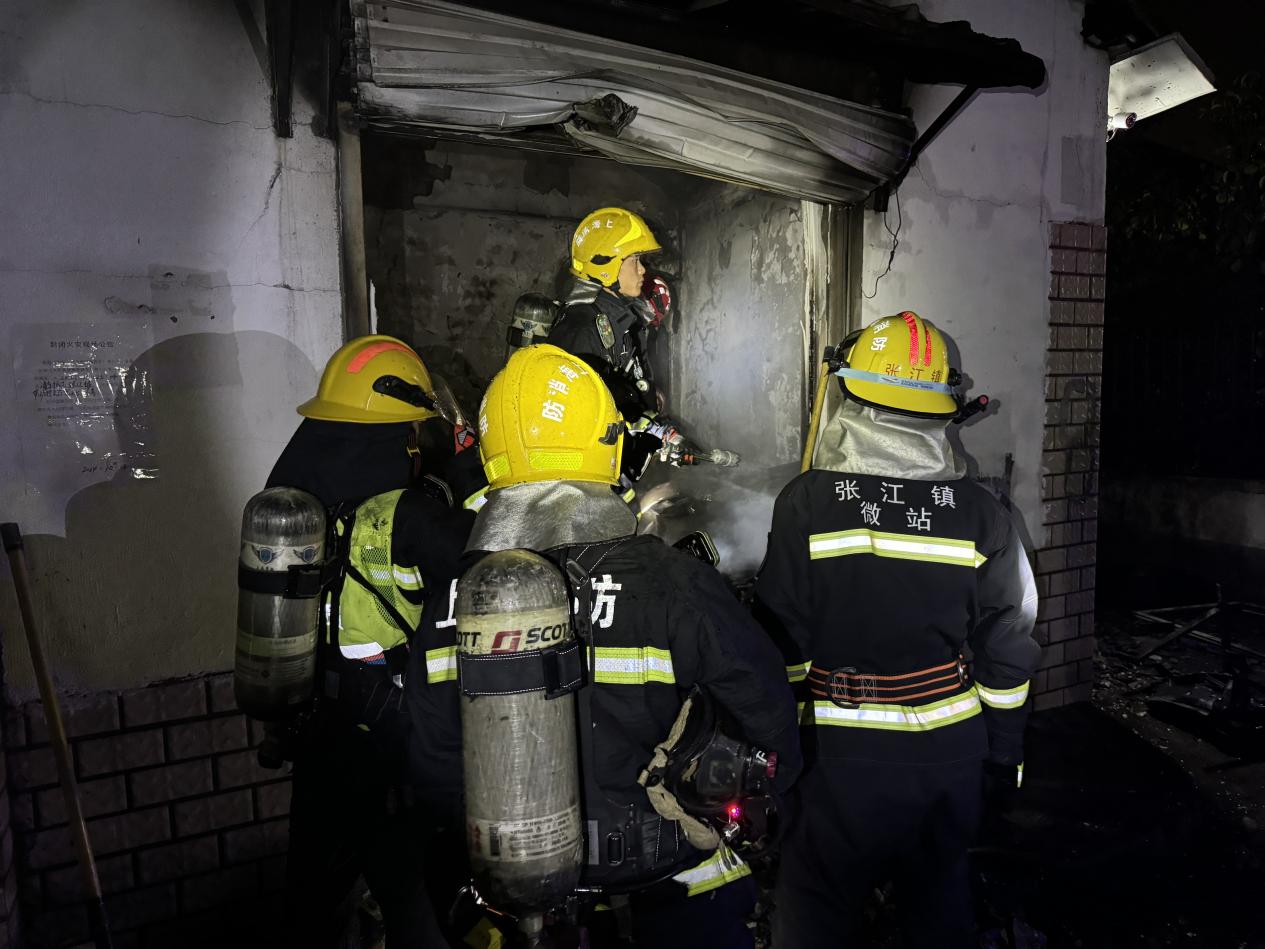 兩支社區(qū)微型消防站隊伍很快趕到現(xiàn)場,與先期到達的張江消防救援站、唐鎮(zhèn)消防救援站的8輛消防車協(xié)同作戰(zhàn),全力實施撲救。4:18,現(xiàn)場火勢被完全控制。