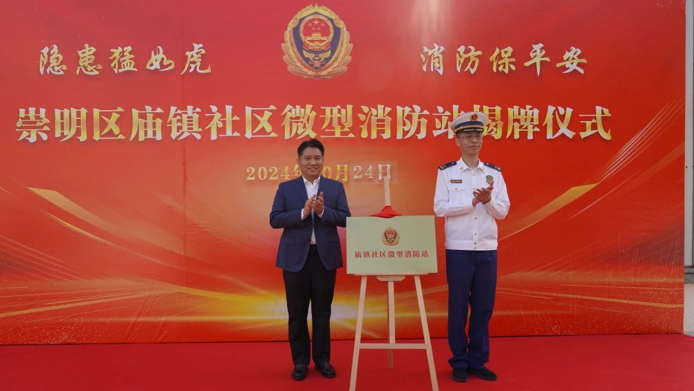10月24日上午,崇明區(qū)廟鎮(zhèn)社區(qū)微型消防站舉行揭牌儀式,宗保公司作為配合建設(shè)單位參加揭牌儀式。廟鎮(zhèn)黨委書(shū)記陳建飛、崇明區(qū)消防支隊(duì)支隊(duì)長(zhǎng)車斌共同為消防站揭牌。