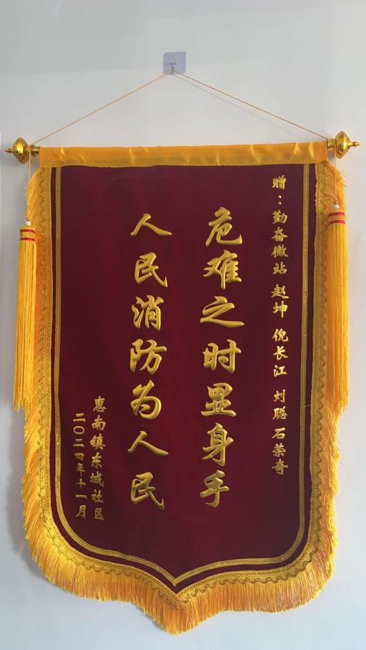 浦東新區(qū)惠南鎮(zhèn)黃路微站獲贈繡有“危難之時(shí)顯身手 人民消防為人民”的錦旗
