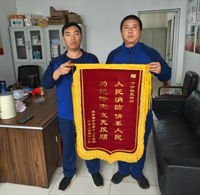 浦東新區(qū)航頭鎮(zhèn)下沙社區(qū)微站獲贈繡有“人民消防 情系人民 為民除災(zāi) 義無反顧”的錦旗