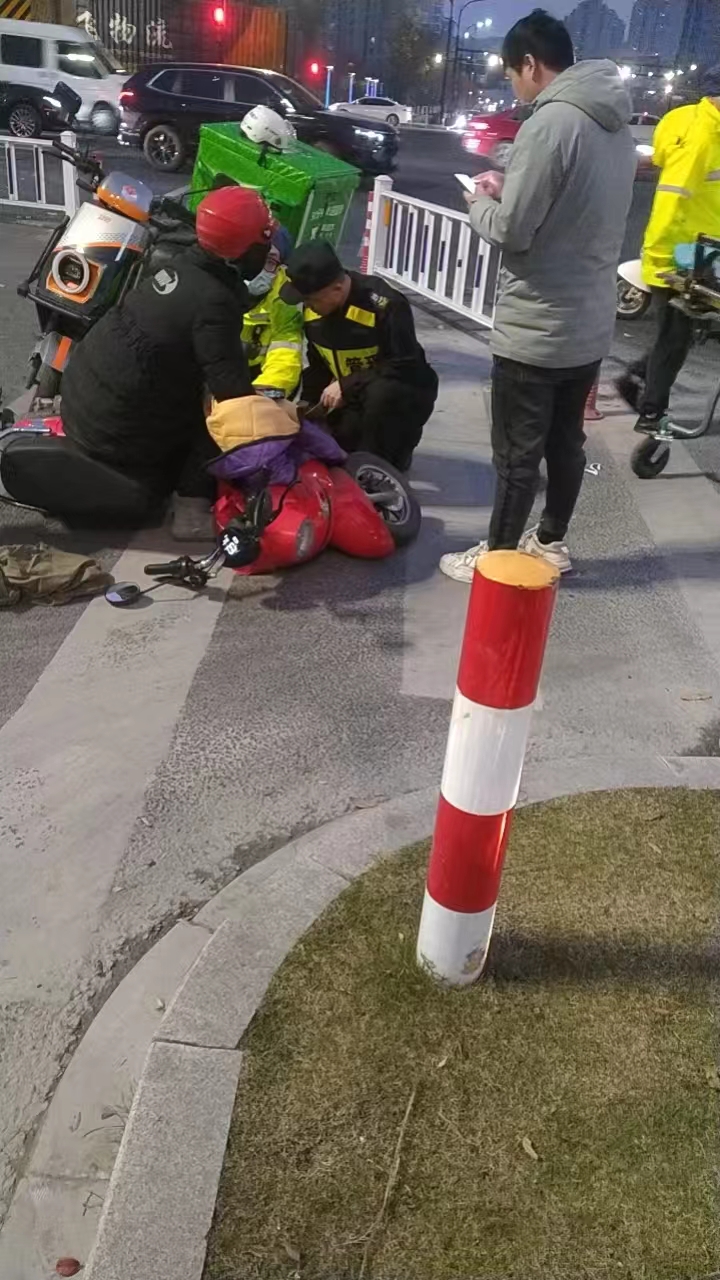 當(dāng)日17:30,公司員工李建軍在320國道與荷禹路交叉口巡查時,突然聽到“砰”的一聲,隨即循聲望去,發(fā)現(xiàn)是一輛電瓶車與一輛三輪車相撞,兩名駕駛員都被撞摔倒在地。