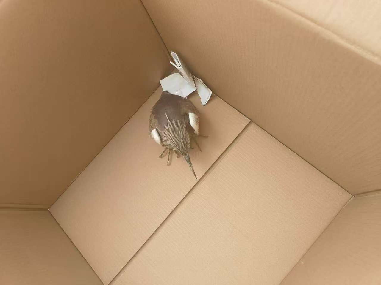 秦文重因看著該鳥不像普通的鳥類就上網(wǎng)查詢,確認(rèn)其是國(guó)家一級(jí)保護(hù)動(dòng)物——池鷺,隨即便趕緊找來(lái)一個(gè)干凈的紙箱,小心翼翼地將受傷的池鷺?lè)旁谙鋬?nèi),并向洋山公安處報(bào)告了情況。