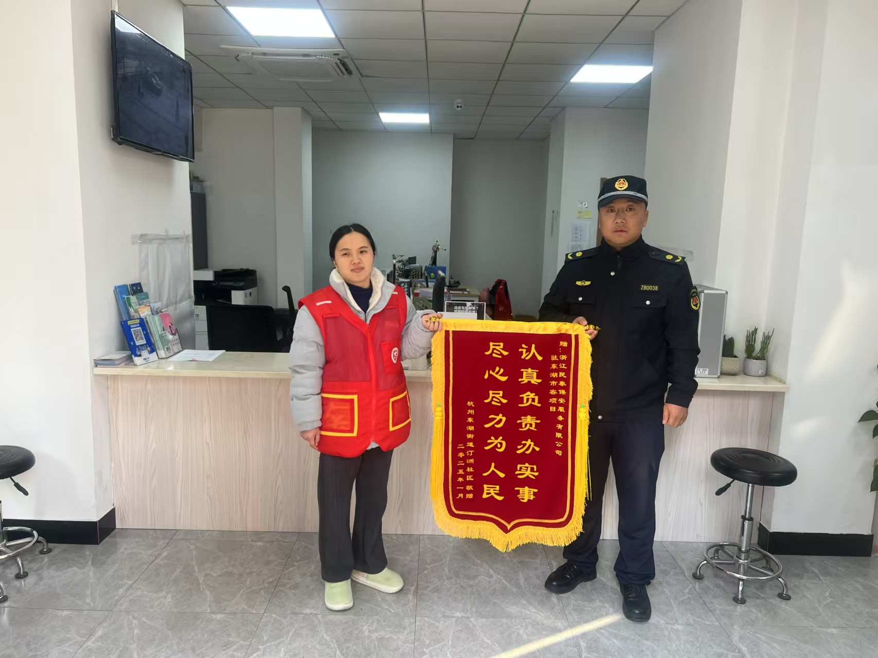 01浙江民泰公司收到杭州市東湖街道汀州社區(qū)的錦旗