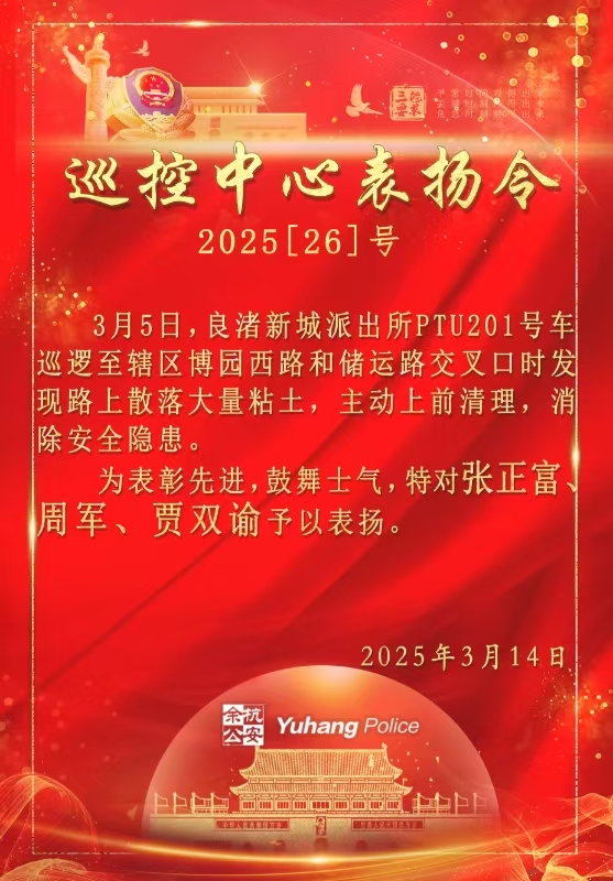 事后,為了表彰每位參與者身上所展現(xiàn)出來(lái)的正能量,余杭區(qū)公安分局巡控中心特意向參與此次清理工作的民泰公司駐杭州市余杭區(qū)良渚新城派出所輔助項(xiàng)目的員工賈雙諭、巡車長(zhǎng)張正富以及勤務(wù)隊(duì)員周軍發(fā)出了通報(bào)表?yè)P(yáng)。他們的行為充分體現(xiàn)了作為社會(huì)成員應(yīng)有的責(zé)任感和使命感,也為構(gòu)建和諧社區(qū)貢獻(xiàn)了自己的力量。