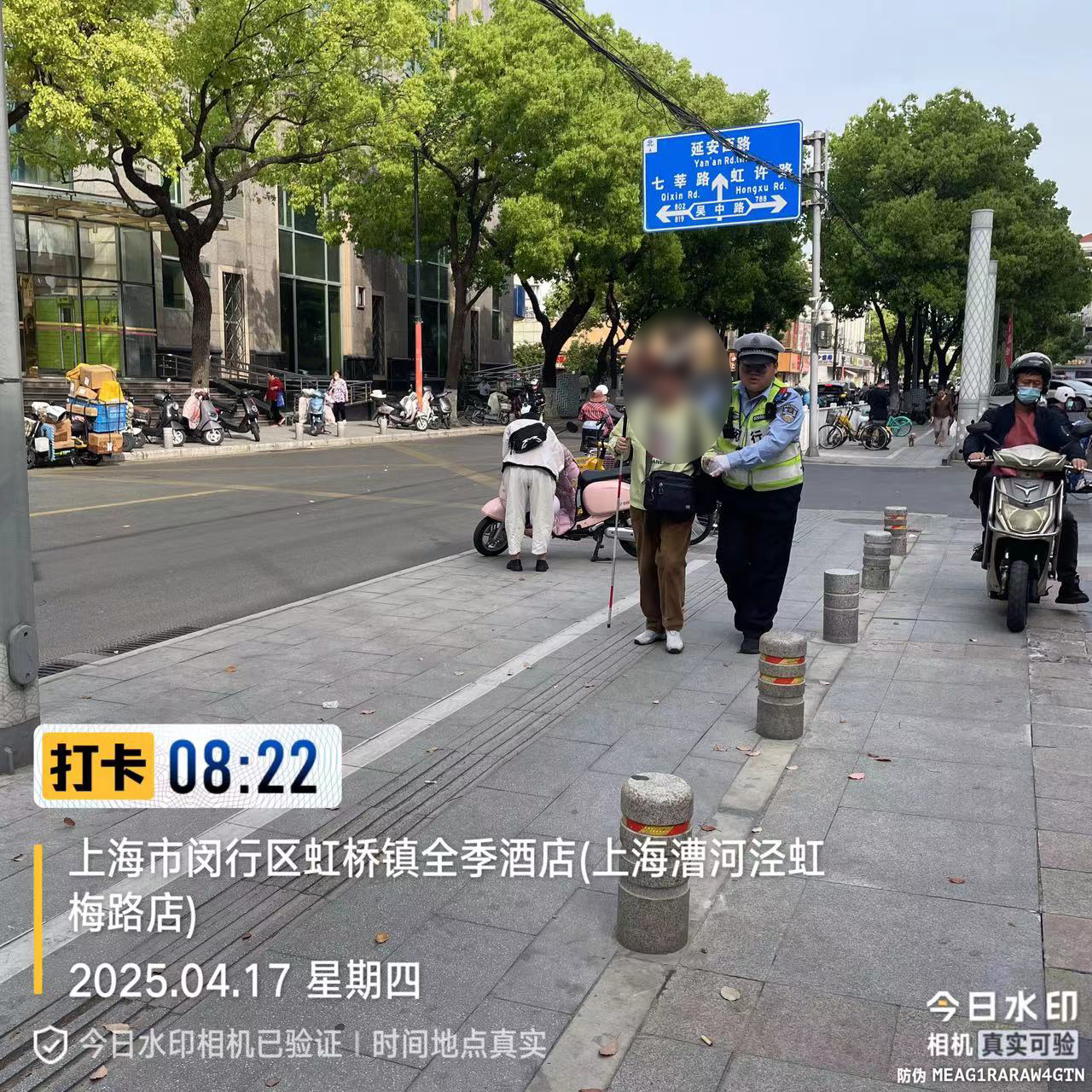 4月17日,宗保公司駐閔行區(qū)虹橋交通管理輔助項(xiàng)目員工郭明皓執(zhí)勤中,熱心幫助一位盲人老人安全乘車,用實(shí)際行動(dòng)傳遞了社會(huì)溫暖與正能量。