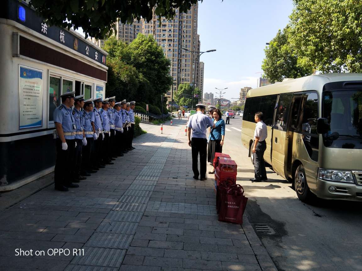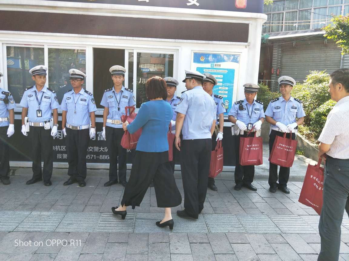 今天下午區(qū)政協(xié)主席阮文靜,區(qū)人大副主任白美玉,副區(qū)長(zhǎng)葛建偉,區(qū)公安分局副局長(zhǎng)徐義峰冒著酷暑來(lái)我閑林街道進(jìn)行“送清涼”慰問(wèn)活動(dòng)。 盛夏時(shí)節(jié),驕陽(yáng)似火,區(qū)政協(xié)主席阮文靜,區(qū)人大副主任白美玉,副區(qū)長(zhǎng)葛建偉,區(qū)公安分局副局長(zhǎng)徐義峰對(duì)頂烈日、戰(zhàn)高溫,始終堅(jiān)持在一線的閑林交通安全工作站的隊(duì)員進(jìn)行了親切慰問(wèn),并對(duì)隊(duì)員們?yōu)樯鐣?huì)做出的貢獻(xiàn)表示感謝,并一一握手親切說(shuō)到“同志們辛苦了”!區(qū)領(lǐng)導(dǎo)對(duì)閑林交通安全工作站隊(duì)員的工作也進(jìn)行了充分的肯定和認(rèn)可,同時(shí)也再三囑咐工作站的隊(duì)員在工作中注意避暑防暑