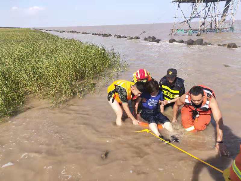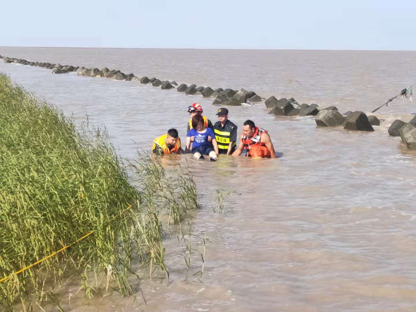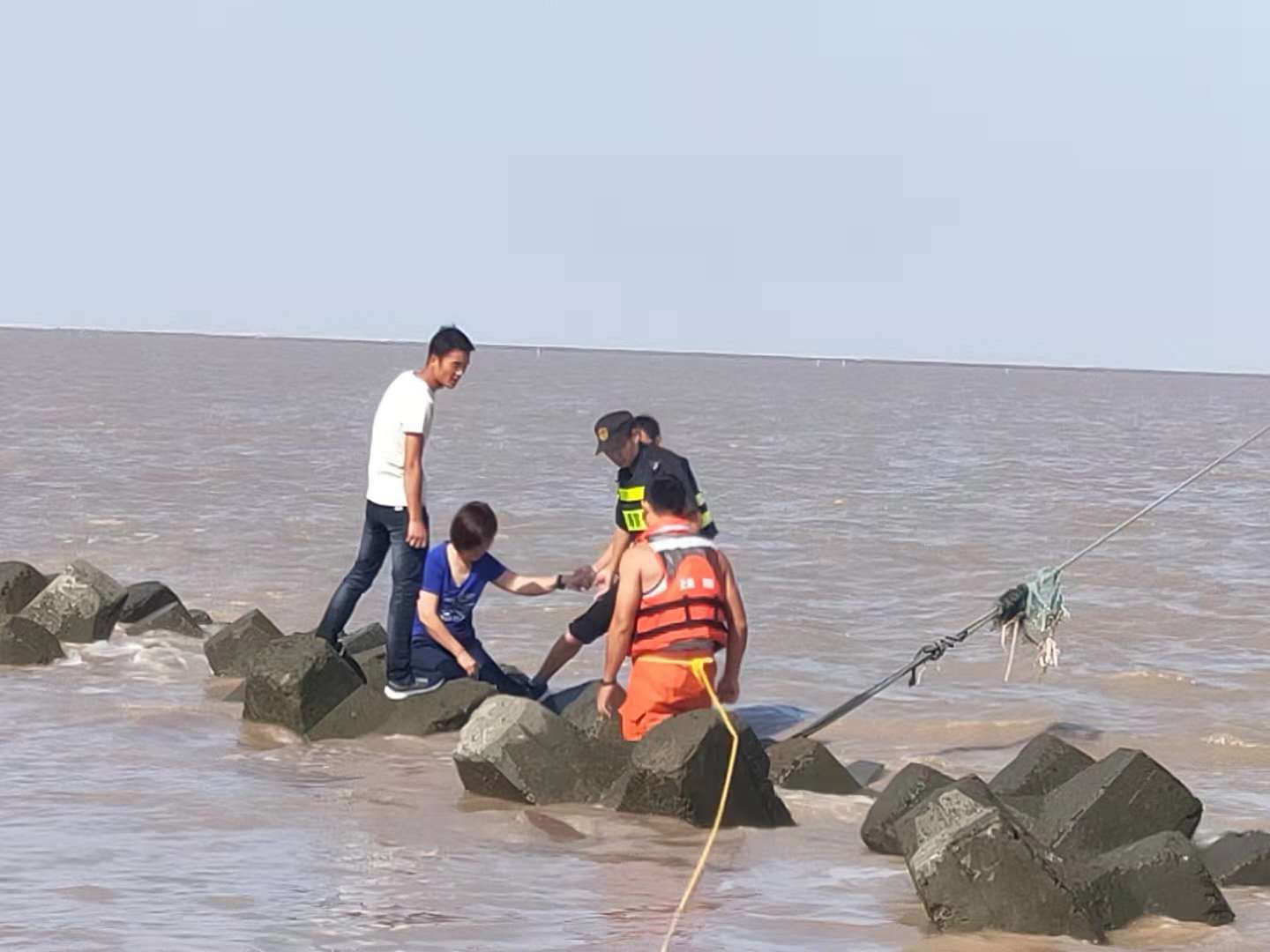 國慶假日,上海臨港,游人如織。海邊的觀海嘴公園風(fēng)景如畫,更是游樂的好去處。不少游客不顧提醒、勸阻,擅自翻躍海堤,到海灘上嬉戲。這兩名青年男女甚至到更遠(yuǎn)的礁石上玩耍,女游客因腿部扭傷,在漲潮時(shí)無法及時(shí)撤離,兩人被海水困住了。