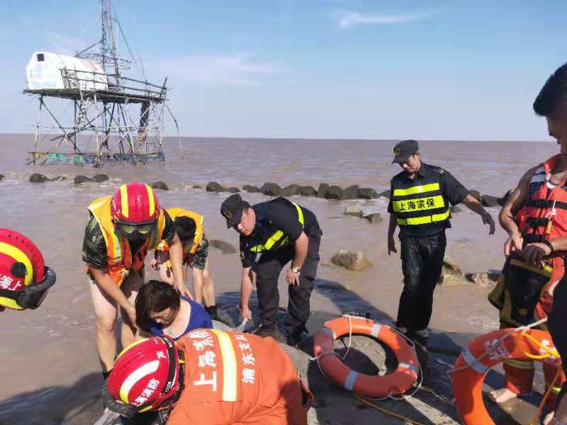 上海宗保保安服務(wù)有限公司南匯新城項(xiàng)目的城管輔警隊(duì)員呂永峰、周柳星、羅玉壽發(fā)現(xiàn)這一險(xiǎn)情后,一邊向值班人員匯報(bào),一邊報(bào)警請(qǐng)求救援。待消防隊(duì)員趕到現(xiàn)場后,積極參與救援。最終,在多方努力下,受困的游客成功獲救。