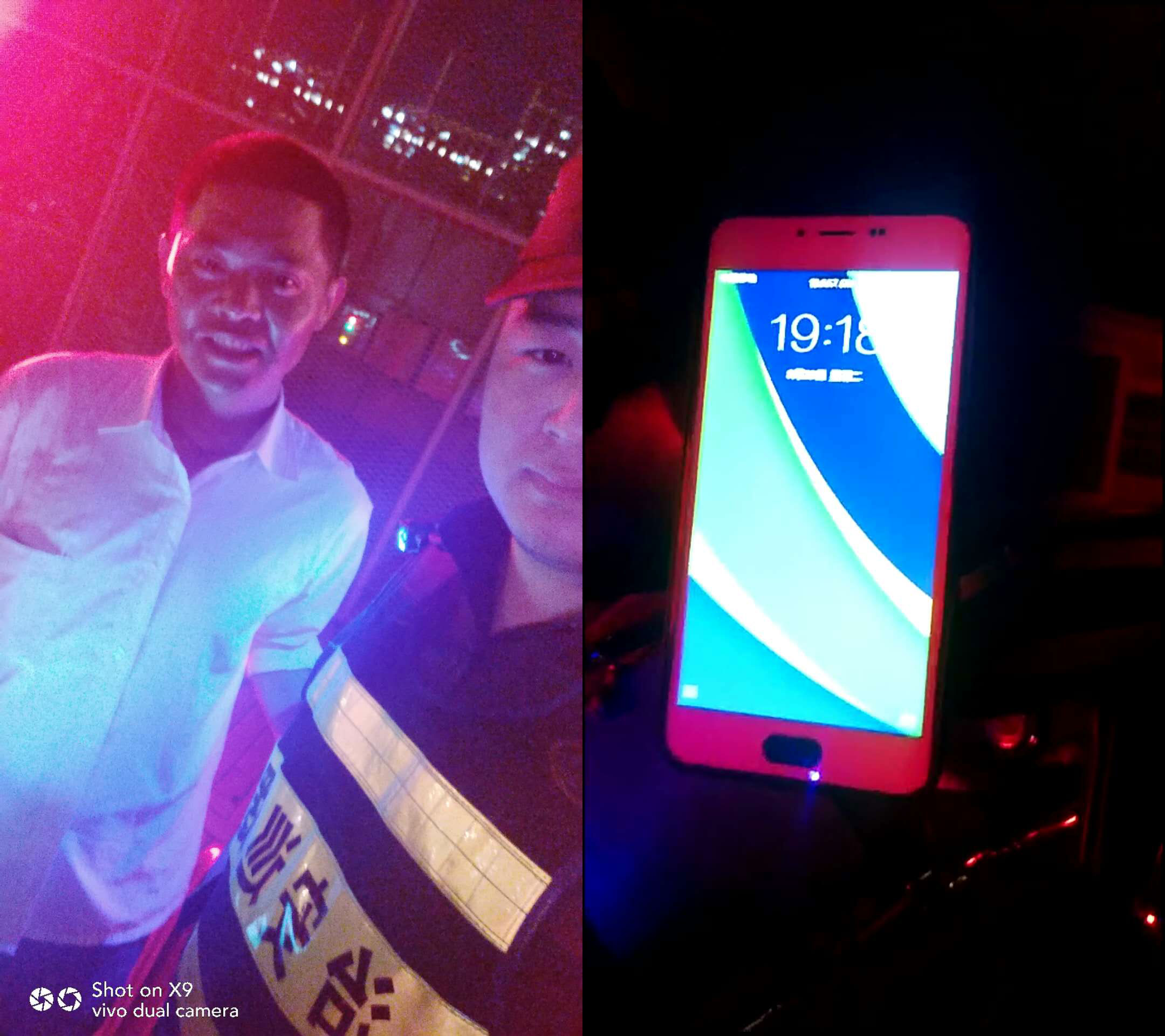 當晚,車主王先生的粗心,離開時竟然將自己的手機遺忘在了電瓶車前車籃。19:00左右宗保特保隊員小劉恰巧巡查至芳甸路地鐵口,發(fā)現(xiàn)了此情況,第一時間上報當日值班。后按照值班領(lǐng)導指示,原地等待車主。歷經(jīng)145分鐘漫長等待,終于在21:25分等到了車主王先生。
