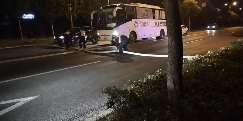 火情刻不容緩,隊員們立即撥打了110、119。在黃路派出所出警之后,協(xié)助民警疏散路上行人、指揮交通、維持現(xiàn)場秩序。等待消防隊到達現(xiàn)場后,經過半小時的努力撲救,大火終于被撲滅。慶幸的是火情發(fā)現(xiàn)及時,未造成損失。